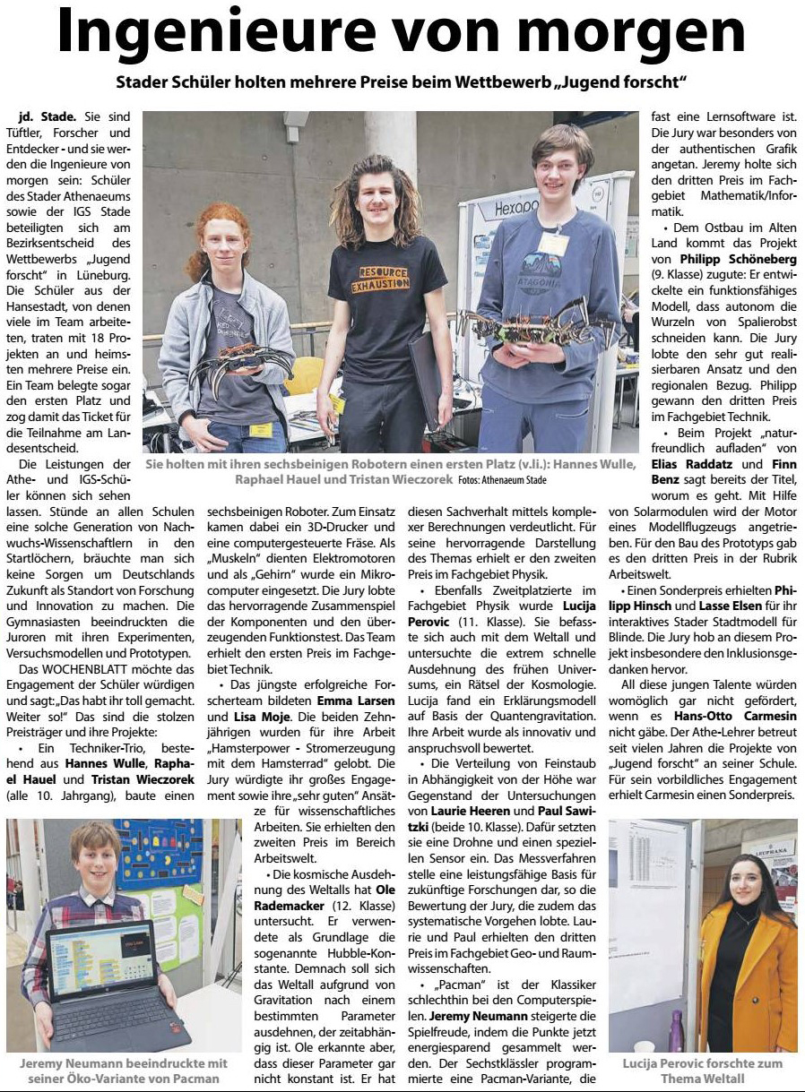 Stader Schüler holen mehrere Preise beim Wettbewerb „Jugend forscht“, unter ihnen auch zwei Schüler der IGS.
