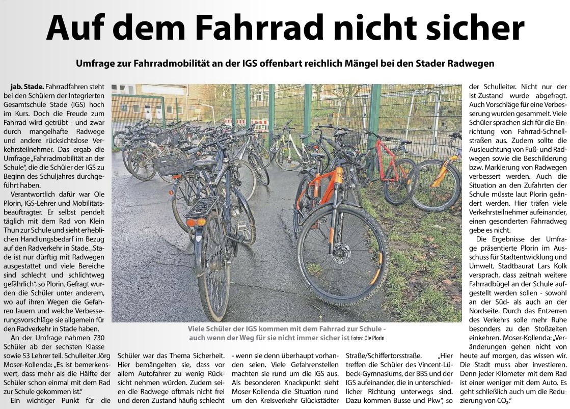 Umfrage zur Fahrradmobilität an der IGS offenbart reichlich Mängel bei den Stader Radwegen.