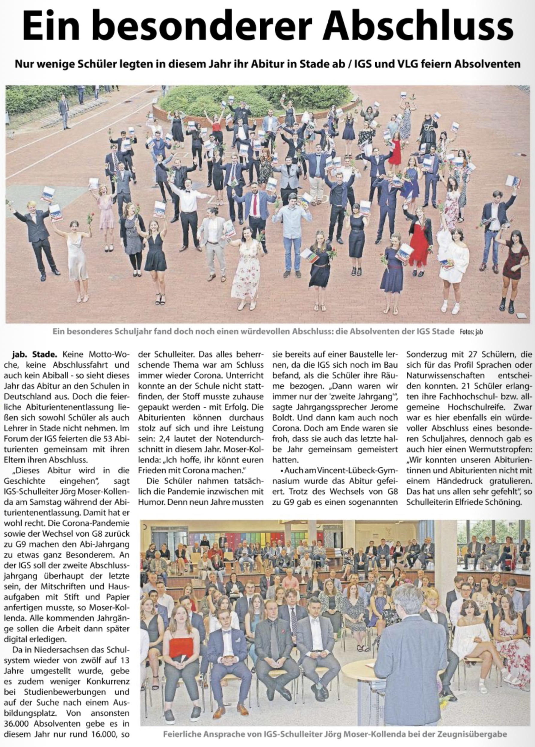Das Wochenblatt berichtet über das Abitur an der IGS in Zeiten der Corona-Krise: