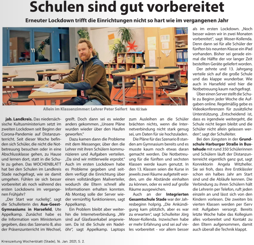 Das Wochenblatt berichtet über die Situation an den Schulen im Landkreis während des zweiten Lockdowns: