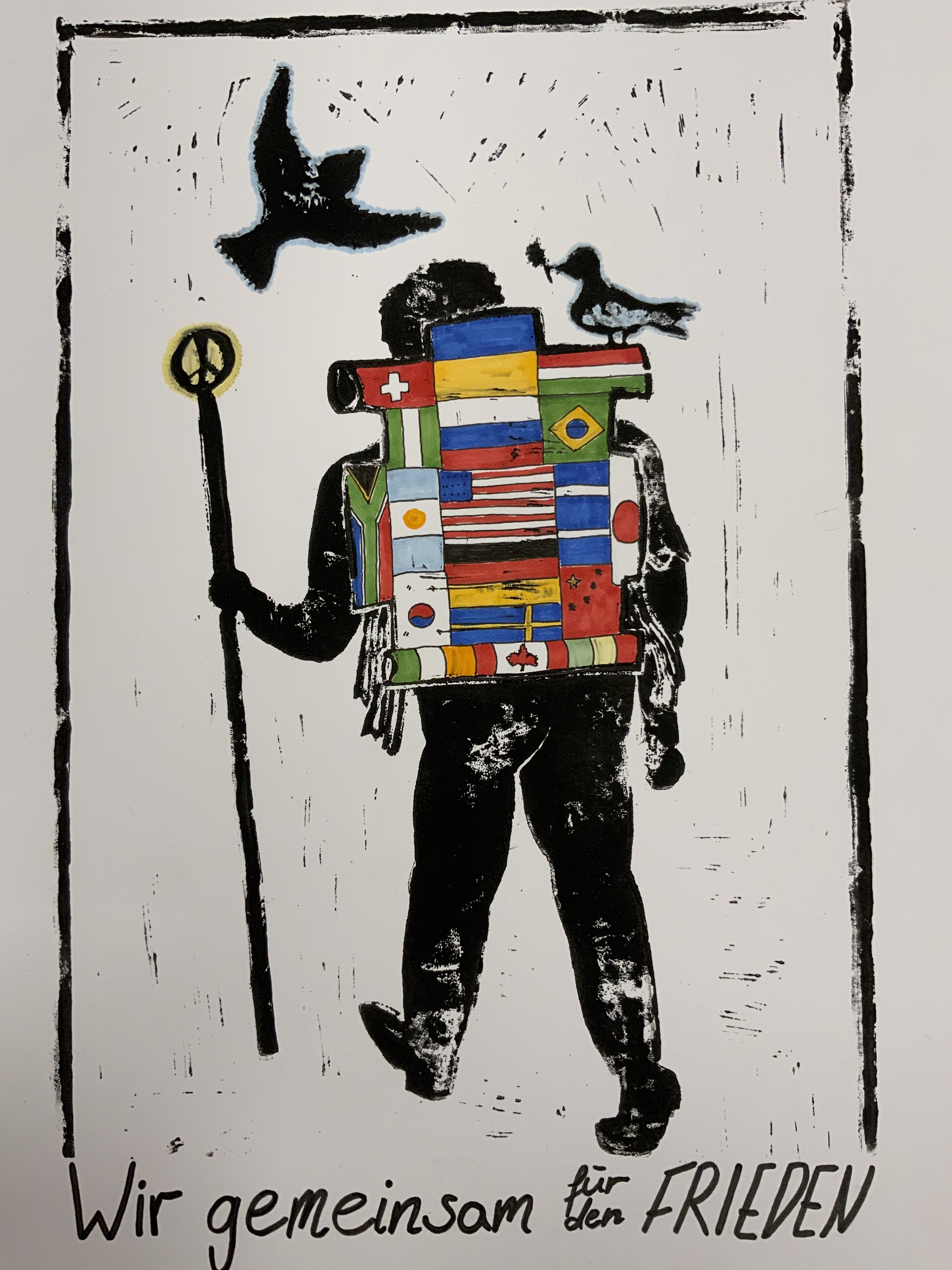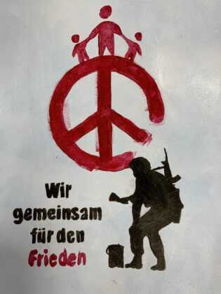 In den Kunstkursen unserer Schule entstehen zur Zeit viele Plakate und Bilder zum Thema „Wir gemeinsam für den Frieden“; ein Auswahl: