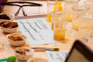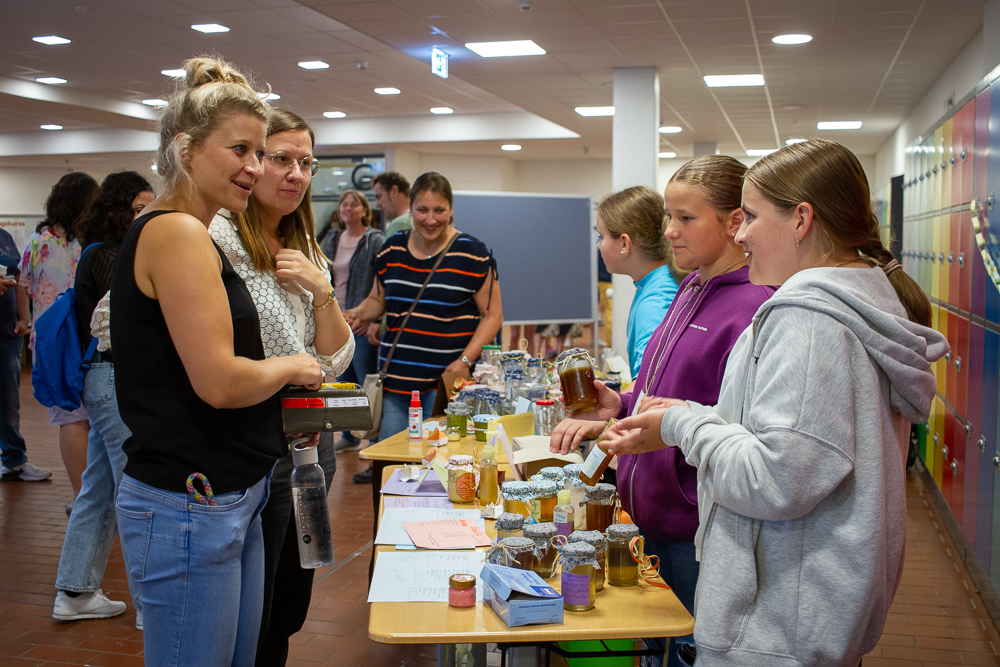 Eine Gruppe hat zum Beispiel einen Lippenbalsam aus Bienenwachs, Sheabutter, Lebensmittelfarbe und Brombeerduft hergestellt. Dieser Lippenbalsam hält ungefähr 1–2 Wochen und soll 1,50–2 Euro kosten. Und ein paar Gruppen haben damit angefangen, ein zweites Produkt zu erstellen. Am Mittwoch wollen sie dann Plakate gestalten, auf denen die Inhaltsstoffe stehen und Informationen dazu, wie das Produkt / die Produkte wirken. Und am Donnerstag bauen sie ihre Stände auf, um ihre Produkte den anderen Schülern und Schülerinnen und Eltern vorzustellen.