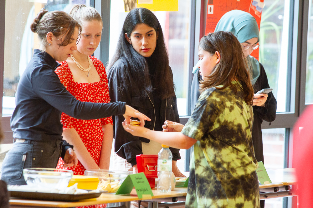 Die Gruppe möchte ausprobieren, wie man ein gesundes Angebot für unsere Cafeteria kochen und backen kann, damit die Schüler und Schülerinnen sich in den Pausen ein gesundes Frühstück kaufen können.