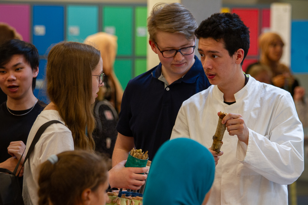 Die Schülerinnen und Schüler haben sich in unterschiedlichsten Projekten aktiv, kreativ und weitgehend eigenständig mit jeweils einem der 17 Ziele für eine nachhaltige Entwicklung auseinandergesetzt. An fünf Tagen in über 50 Projekten wurde gelernt, gemacht, geschaffen und organisiert. Am letzten Tag der Projektwoche wurden die Ergebnisse der Projektarbeiten dann der Schulöffentlichkeit vorgestellt: