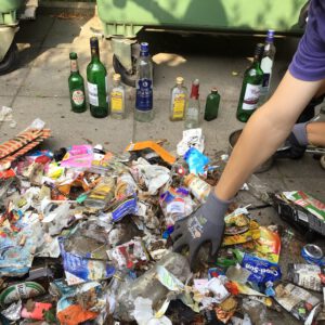 Die Woche der Gruppe lief so ab, dass sie am Freitag im Wald waren und nach Mülleimern gesucht haben und ihr weiteres Vorgehen geplant haben. Am Montag haben sie dann vormittags die erste Runde Müll gesammelt und die Ergebnisse am Ende auf einen großen Haufen gestapelt. Dort haben wir sie auch begleitet. Am Nachmittag haben sie dann die zweite Runde Müll gesammelt. Am Dienstag haben sie dann Schilder erstellt, auf denen sie darauf aufmerksam machen, wie es aussieht, wenn Tiere an Müll sterben, und dazu aufrufen, Müll nicht einfach in den Wald zu werfen. Am Mittwoch wollten sie dann die Schilder fertigstellen. Danach ist die Gruppe noch einmal in den Wald gegangen und hat Orte gesucht, wo man diese aufstellen könnte.