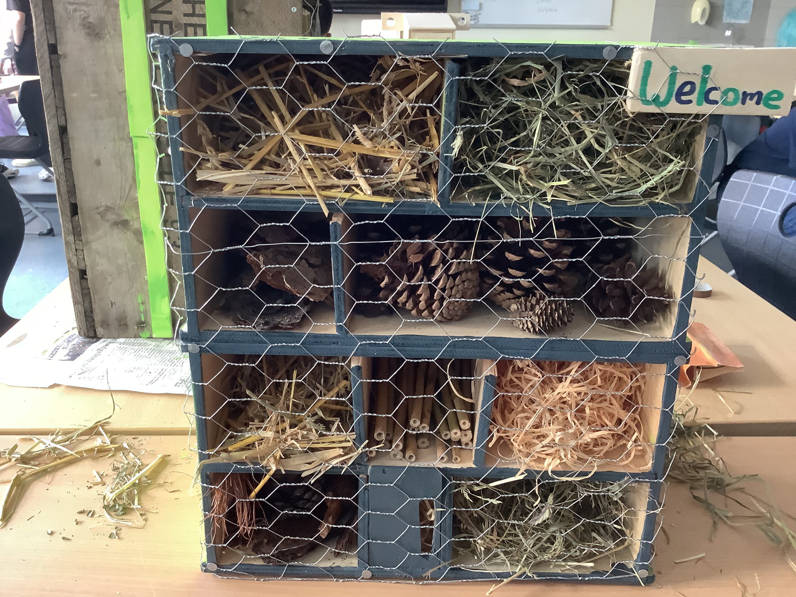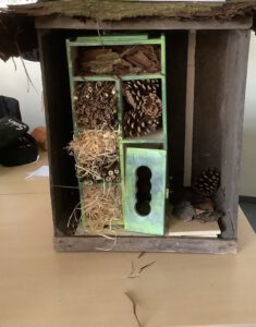 Heute war der Endschliff dran, viele haben ihre Vogelhäuser/Insektenhotel fertiggestellt Hier sind ein paar Ergebnisse:
