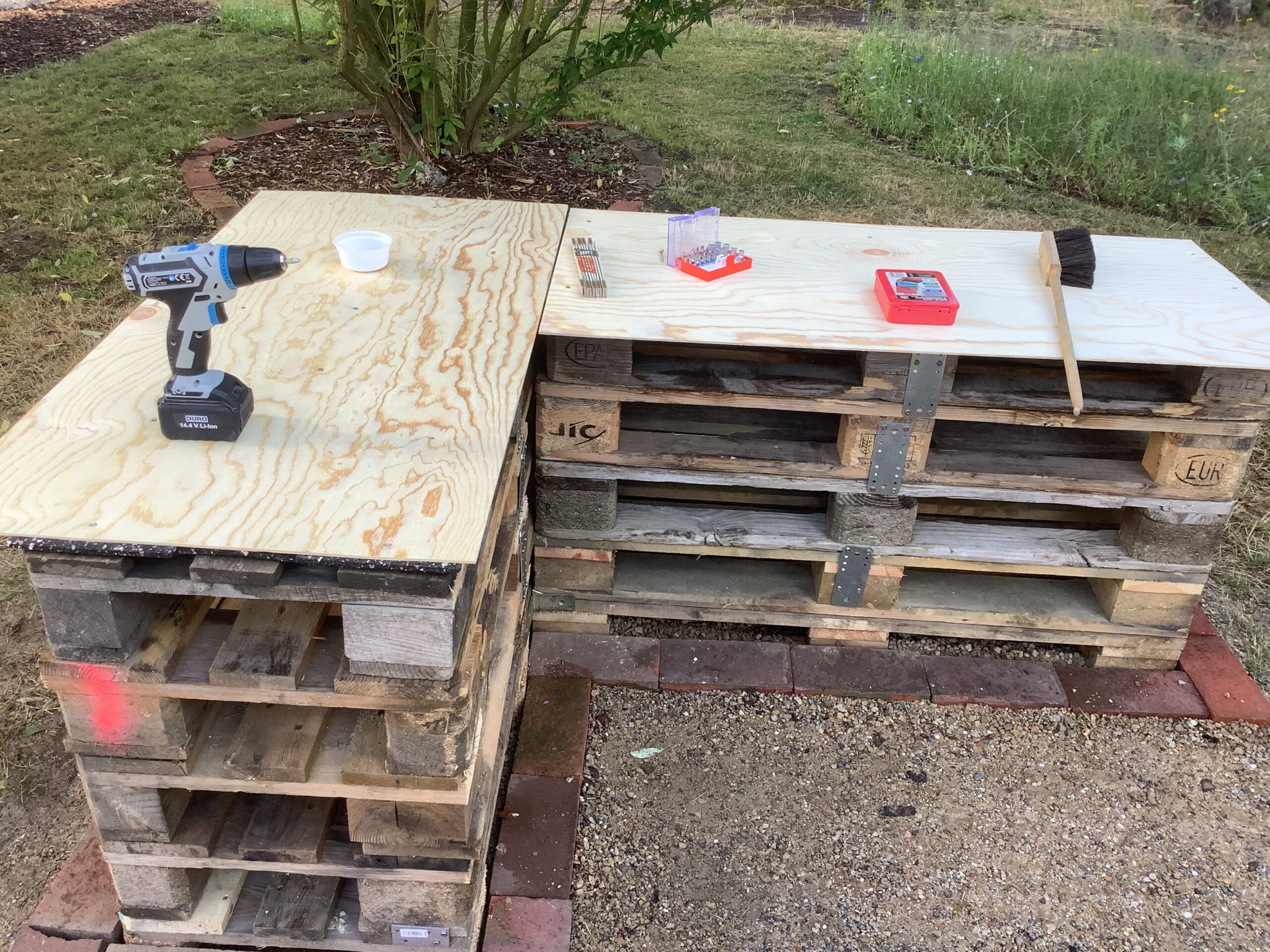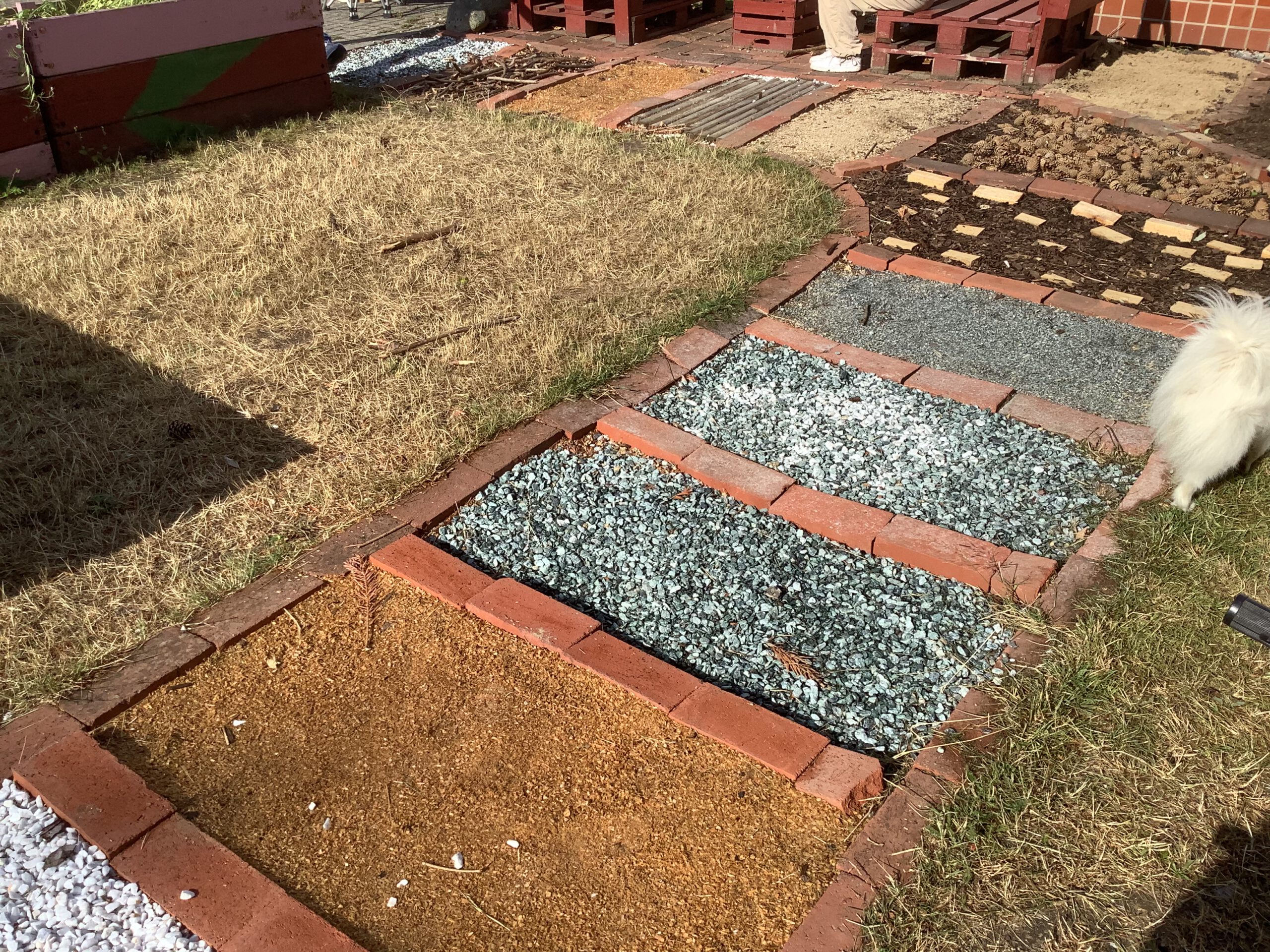 Alle arbeiteten, um den Barfußweg fertig zu bekommen, und wenn sie dies nicht taten, werkelten sie an einem Tisch. Wir machten unser letztes Interview: