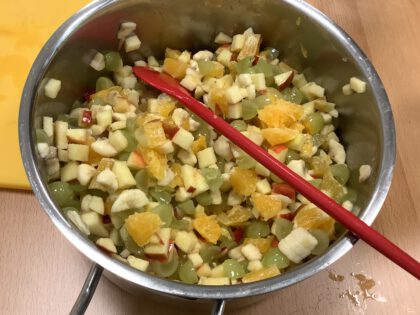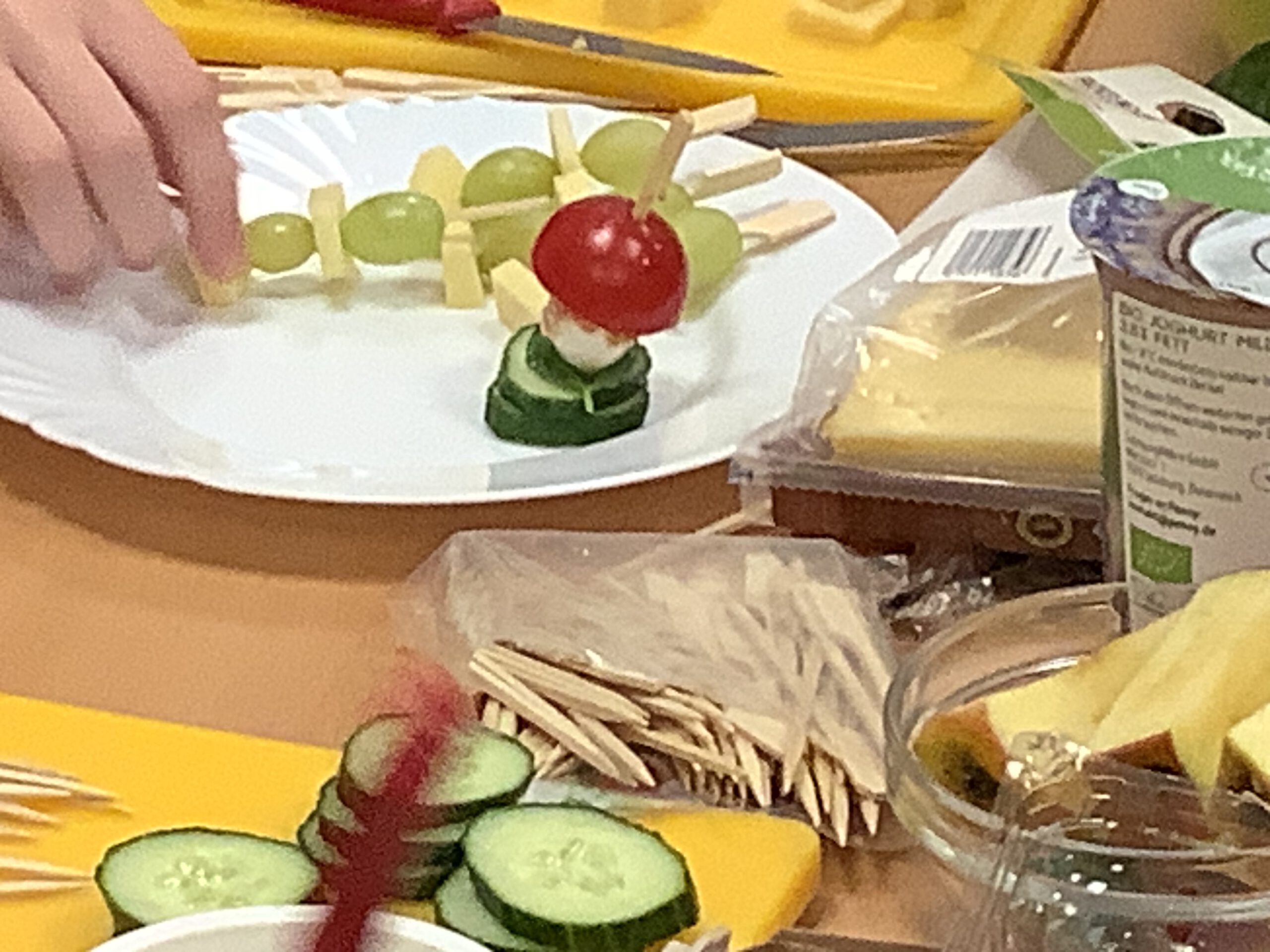 Wir haben uns das Projekt „gesundes Cafeteria-Angebot“ angesehen und wir haben echt leckere Sachen gesehen, wie zum Beispiel ein belegtes Brot, Obstspieße, einen Obstsalat und Muffins. Es sah alles nicht nur sehr lecker aus, sondern hat auch gut geschmeckt und gerochen.