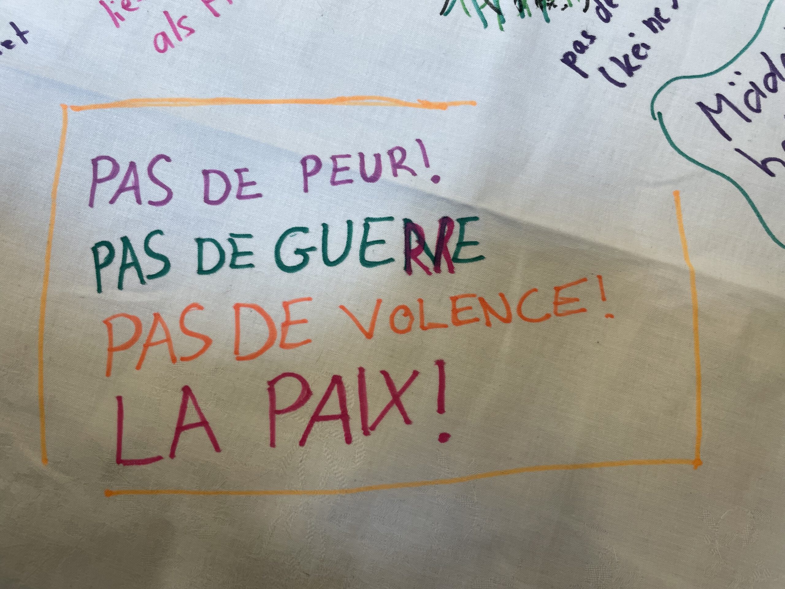 Ziel ist es, das Thema in den Unterricht zu integrieren und uns alle – Schülerinnen und Schüler sowie Lehrkräfte – zu ermutigen, eigene Ideen und Ansätze zum Thema Frieden zu entwickeln und sichtbar zu machen.