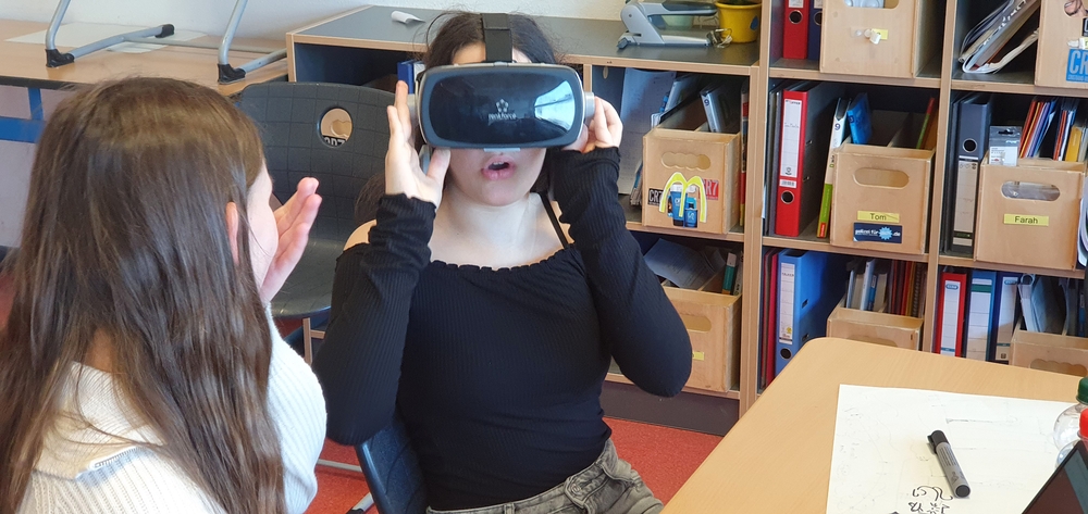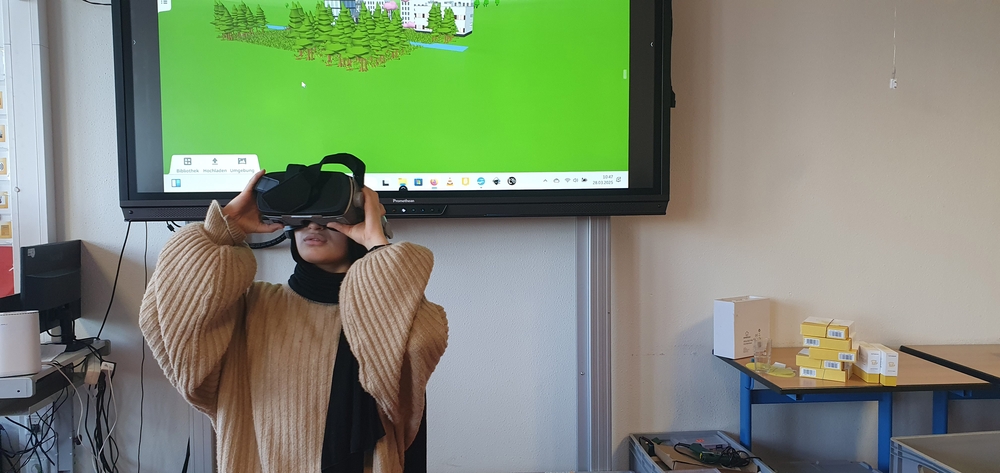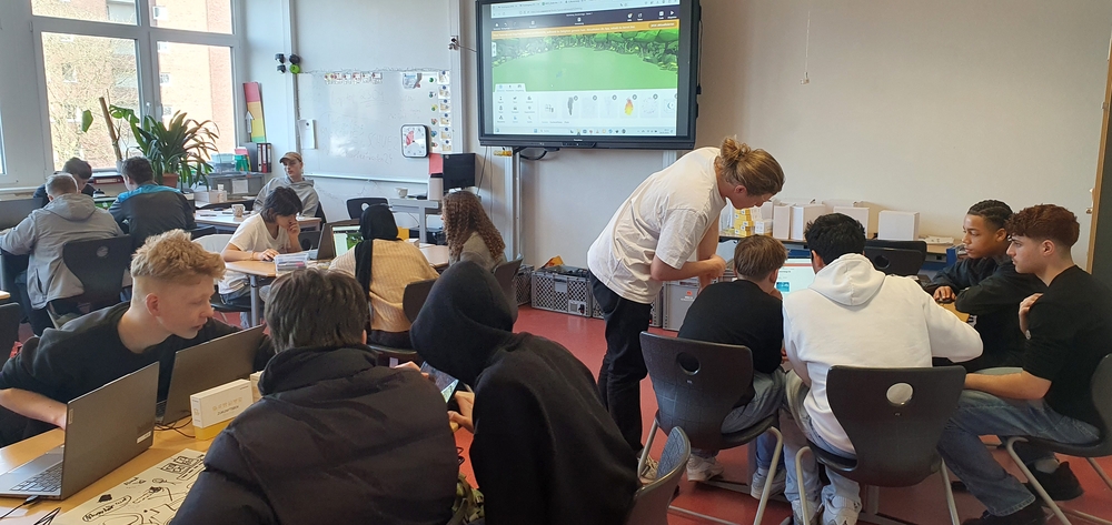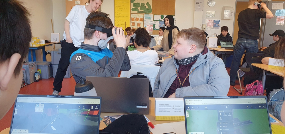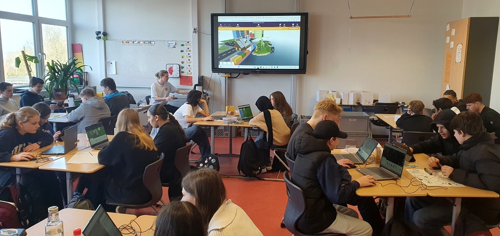 Alle Schüler:innen der Klassen 5 bis 8 haben in der letzten Märzwoche ein Workshopangebot vom Futurium mit ihrer Klasse besucht, in dem sie sich spielerisch und interaktiv den Herausforderungen der Zukunft gewidmet haben. Es kamen Mini-Roboter und 3D-Drucker zum Einsatz, es wurde programmiert und getüftelt, Videos wurden gedreht und VR-Brillen für die Vorstellung der Welt von morgen genutzt. Die zwei- bis sechsstündigen Workshops waren so vielfältig wie die Herausforderungen und Chancen, vor denen unsere Welt in den kommenden Jahren steht. Die behandelten Themen reichten von der Zukunft der Mobilität über die Arbeitswelt von morgen bis hin zu der Zukunft der Ernährung. Dabei wurden die Schüler:innen motiviert, die Zukunft als Chance zu begreifen, die sie aktiv mitgestalten können.
