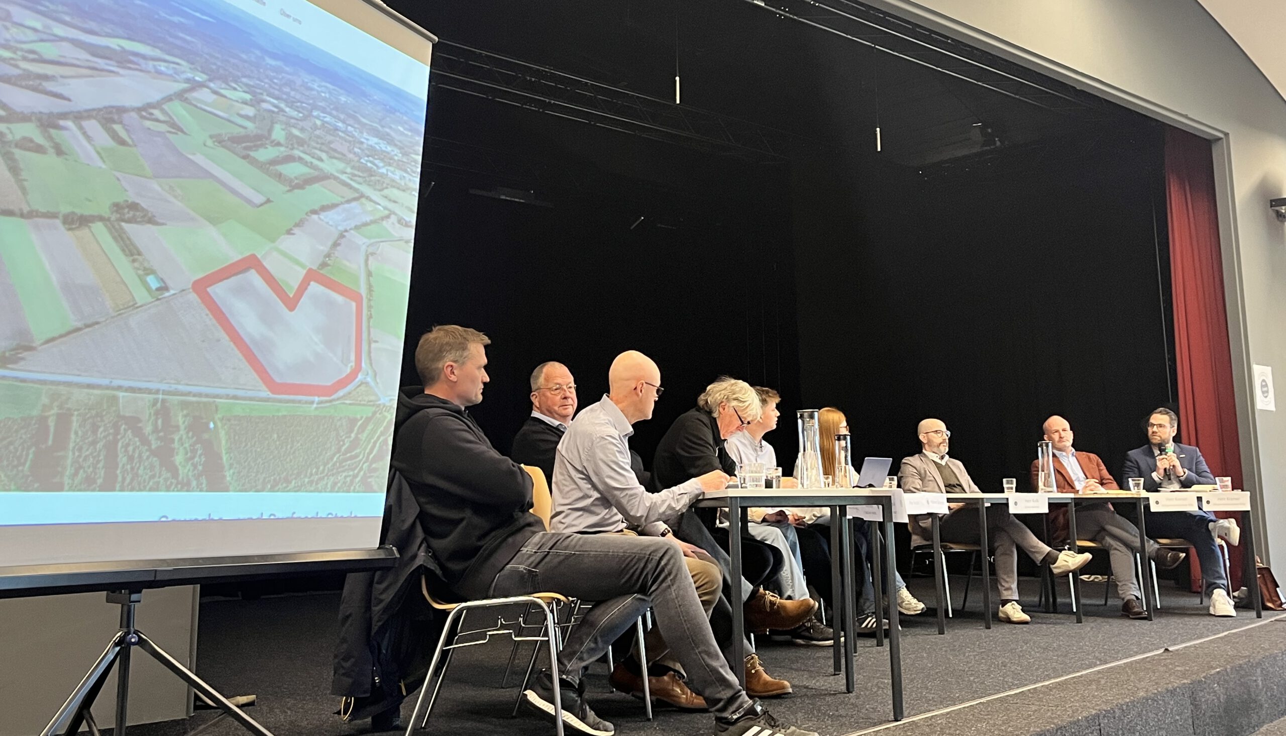 Zu Beginn stellte Lars Kolk den aktuellen Stand des Projekts vor. Demnach liegt derzeit ein Antrag zur Aufhebung des Baustopps beim Verwaltungsgericht; eine Entscheidung steht noch aus. Parallel dazu wird an der Erschließung des geplanten Gewerbegebiets gearbeitet.