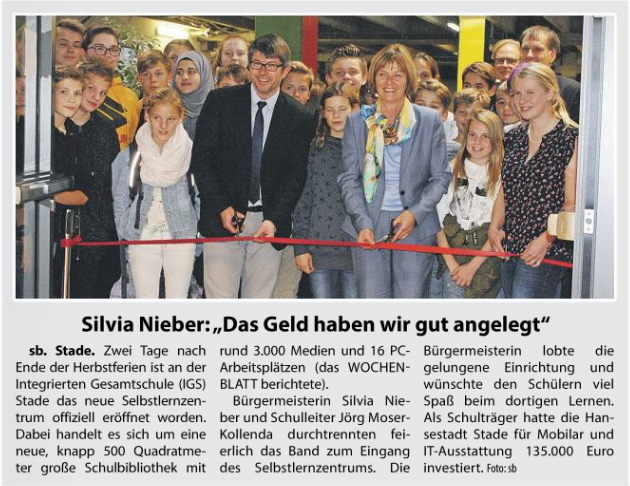 In ihrer Ausgabe vom 25. Oktober 2017 berichtet das Wochenblatt über unser Selbstlernzentrum, welches nach den Herbstferien eröffnet wurde.