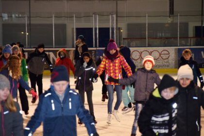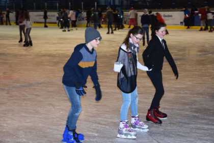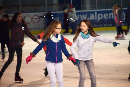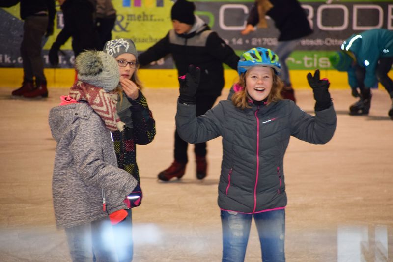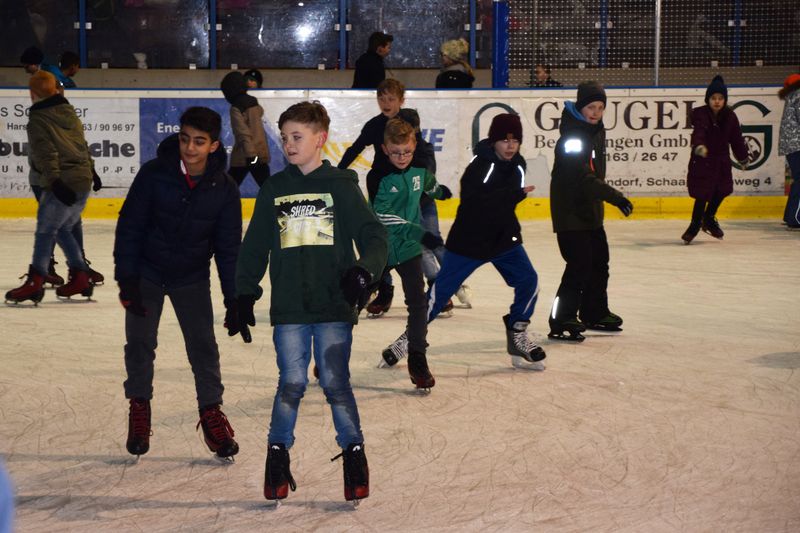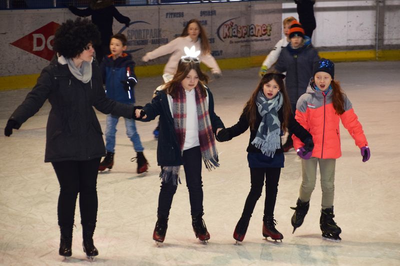 Am vergangenen Montag ging es für den fünften Jahrgang nach Harsefeld, um dort gemeinsam auf dem Eis Schlittschuh zu fahren. Vom erfahrenen Profi bis zum Neuling war alles auf dem kühlen Untergrund vertreten und jeder konnte in seinem Tempo Runde für Runde in der Halle drehen. Der ein oder andere brauchte dabei zwar Hilfe oder landete auch mal auf dem Hosenboden, trotzdem war die Stimmung großartig. Passend zum Rosenmontag war auch die ein oder andere Verkleidung zu beobachten. Ob Einhorn, Waldschrat oder mit Perücken ausgestattete Jecken: Alle machten eine gute Figur und bewegten sich zu fetziger Musik über das Eis. Abseits des Treibens konnte sich gestärkt und auch mal geschnackt werden. Alles in allem war es ein gelungener Ausflug, der bei allen Beteiligten eine schöne Abwechslung zum Schulalltag darstellte. (HDK)