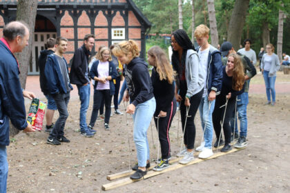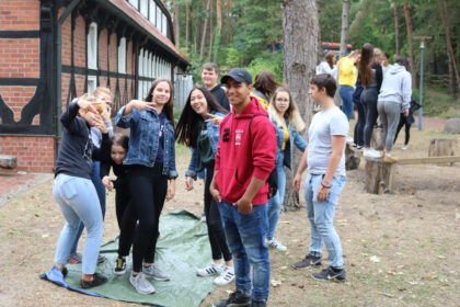 Als der Jahrgang dort angekommen ist, ging es auch schon direkt mit dem ersten Kennlernspiel los und wir bekamen unsere Zimmer. Nachdem wir diese bezogen hatte, sind wir mit der Klasse zusammengekommen und haben über Tischgruppen geredet, dann ging es auch schon an die erste Herausforderung, denn wir sollten anonym Tischgruppen für eine Parallelklasse konstruieren. Eine andere Klasse tat das dann auch für uns. Unsere Tischgruppen haben wir nach dem Mittag und nach einer Pause dann auch endlich bekommen. In diesen Tischgruppen haben wir in den drei Disziplinen Erklären, Erzählen und Darstellen spontanes Zusammenarbeiten geübt, um schon mal die neue Tischgruppe kennenzulernen und um ein Team zu werden. Die Tischgruppe, die die jeweils beste in einer der 3 Disziplin war, durfte ihre Klasse vor dem Jahrgang in der Tischgruppenolympiade vertreten. Natürlich gab es zwischenzeitlich auch einige Pausen und Abendessen. Nach dem Abendessen haben wir uns im Jahrgang getroffen, um den Abend gemeinsam zu verbringen: einige spielten Gesellschaftsspiele, andere waren sportlich aktiv. Danach stand der Rest des Abends frei zur Verfügung und nach einem langen Tag ging es gegen 24:00 Uhr ins Bett.