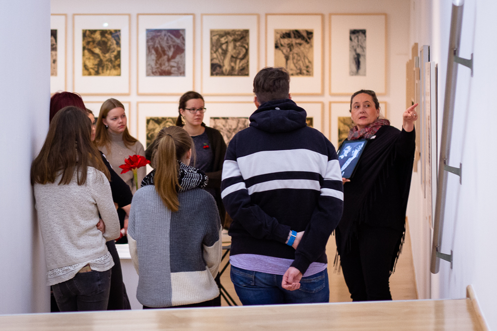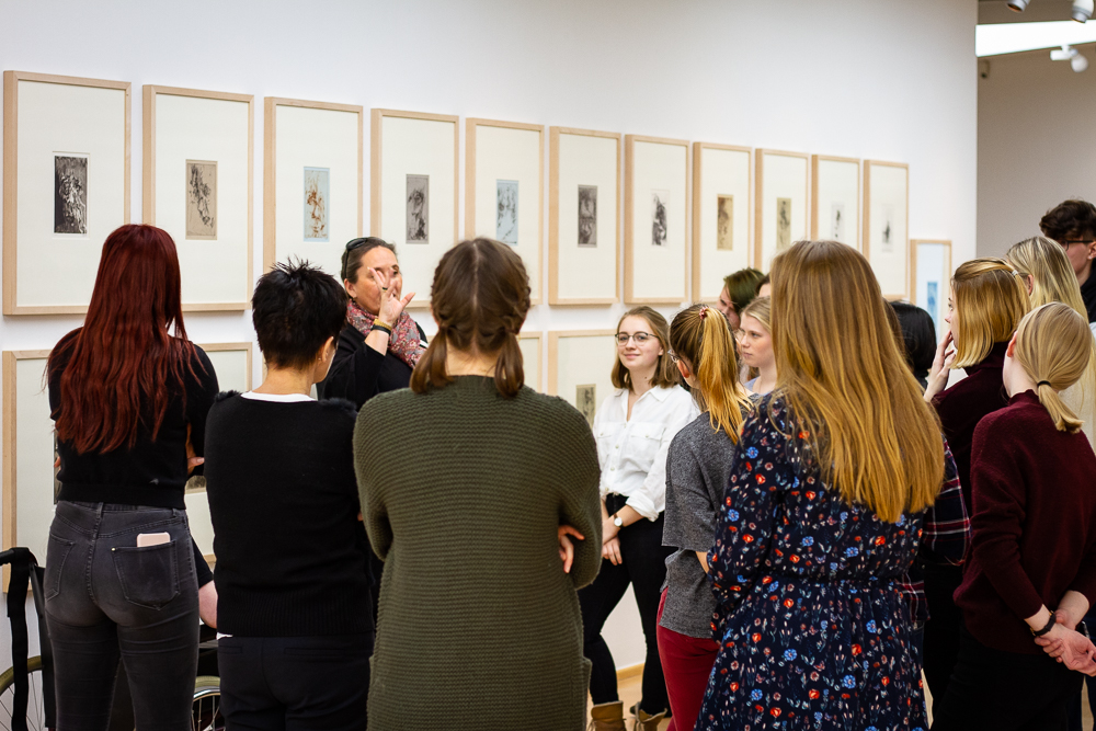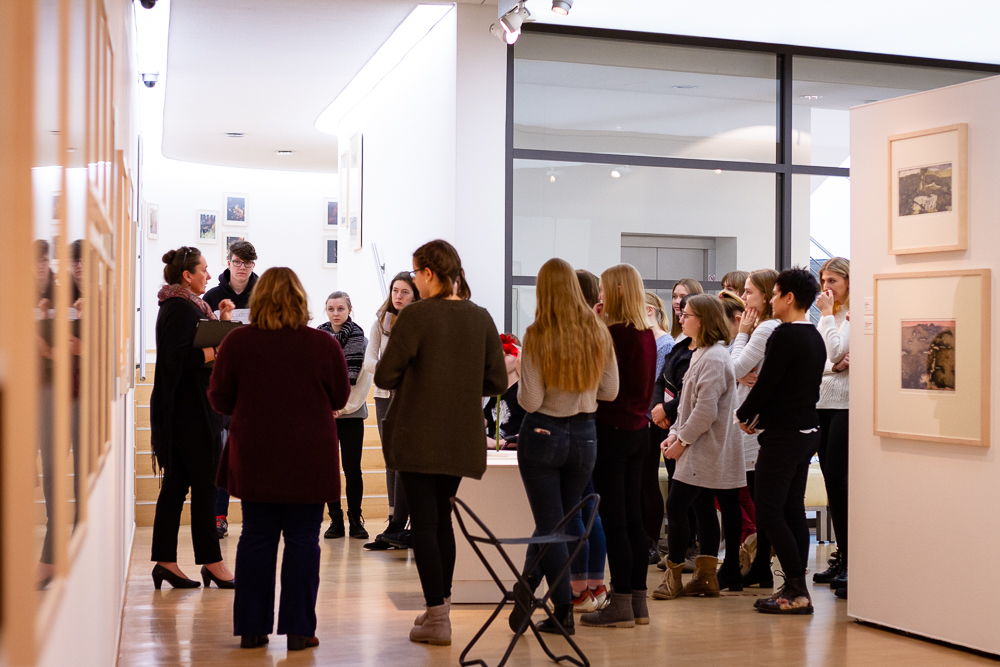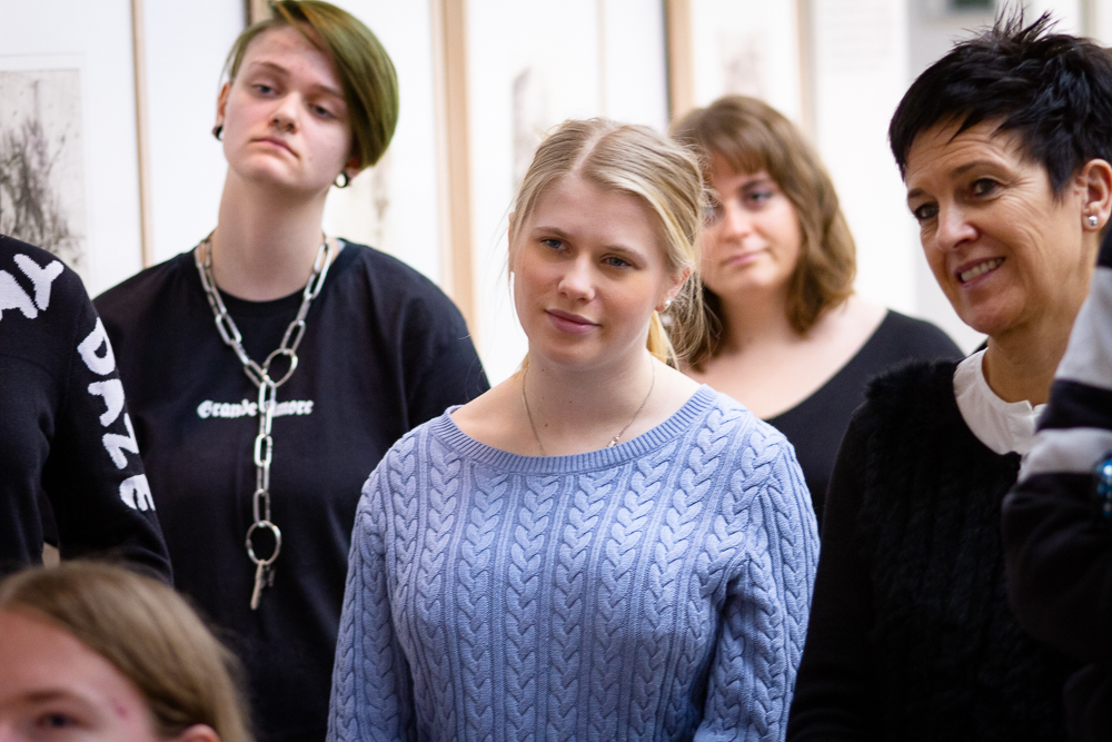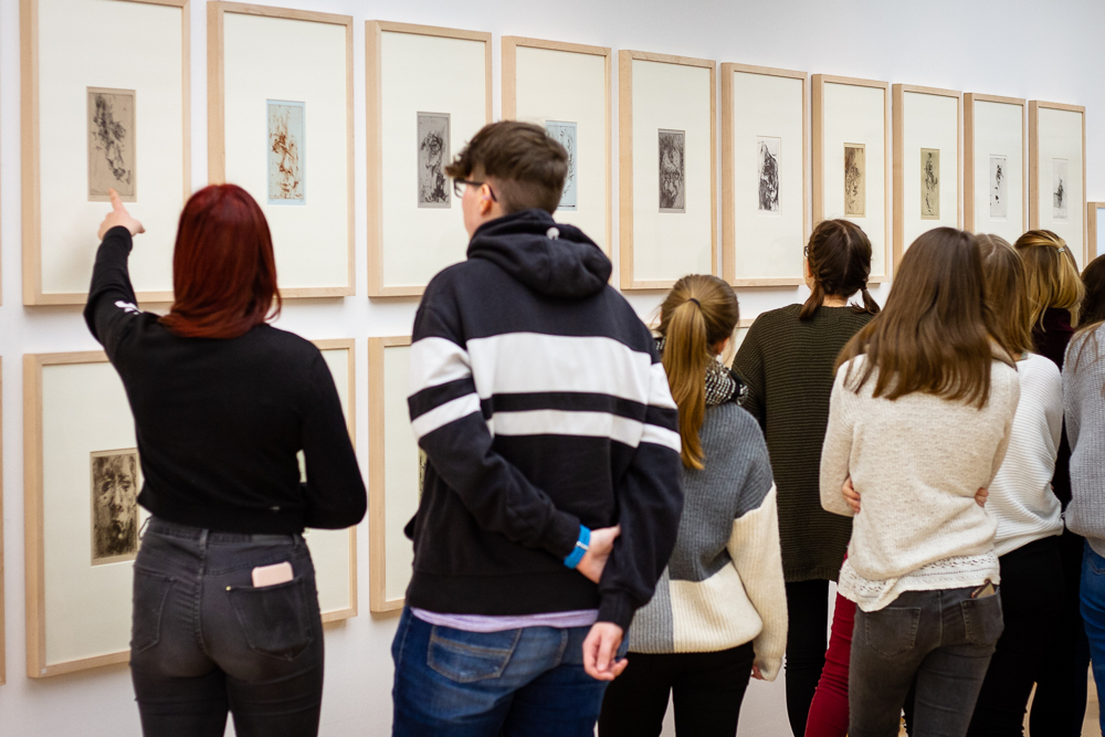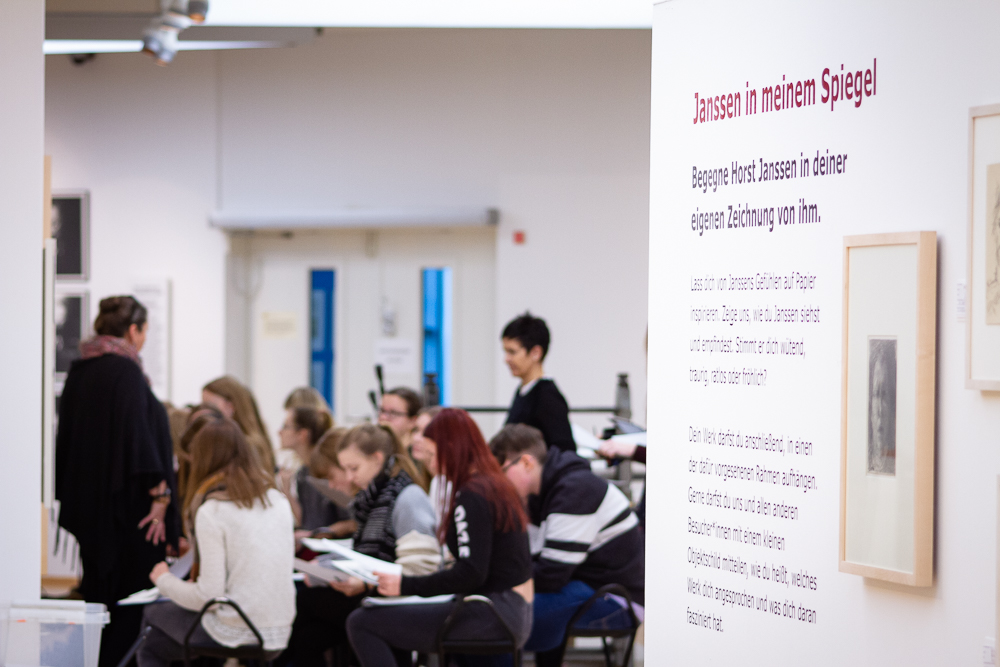 Im Rahmen des museumspädagogischen Programms erhielten die Schülerinnen und Schüler eine sehr informative und fundierte dialogische Führung durch die Kunstvermittlerin Geraldine Dudek zum Leben und Werk Horst Janssens mit besonderem Schwerpunkt auf den Radierzyklus „Hannos Tod“.