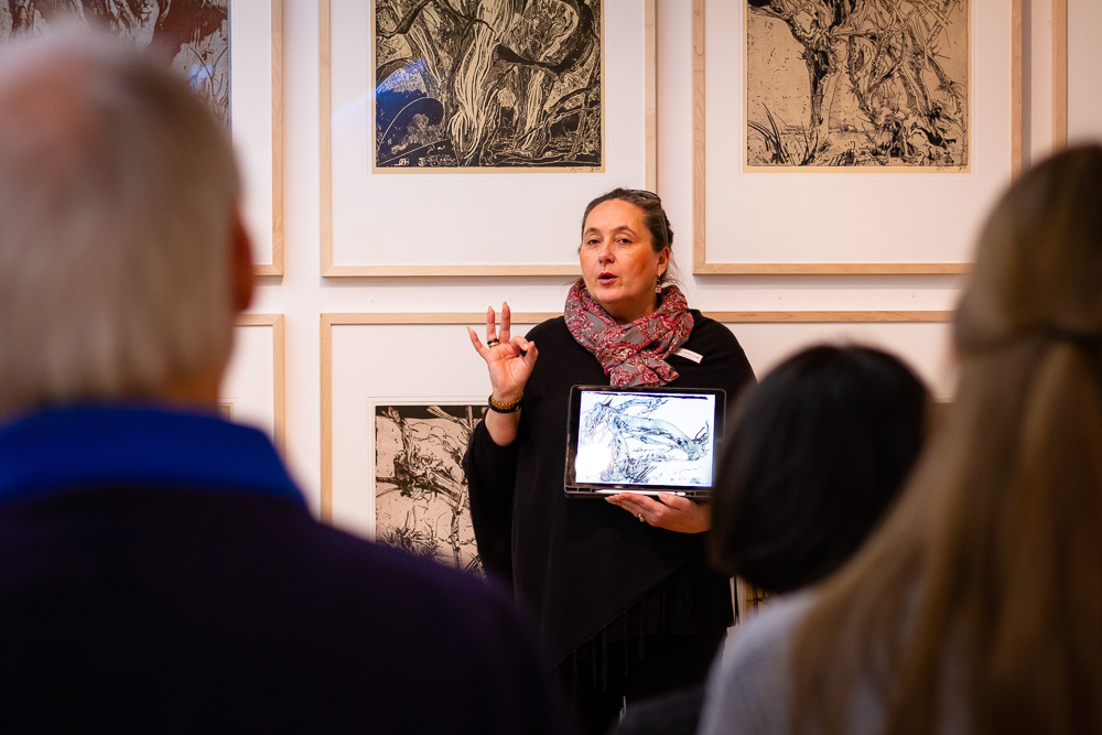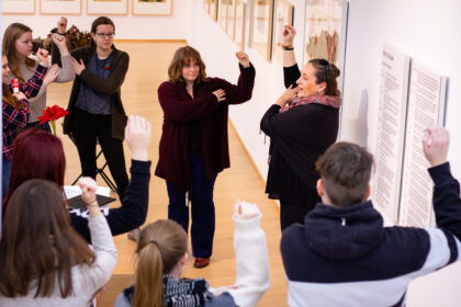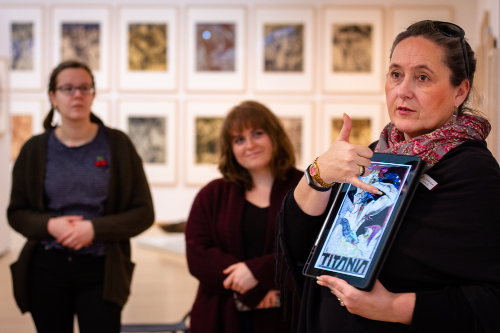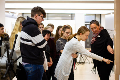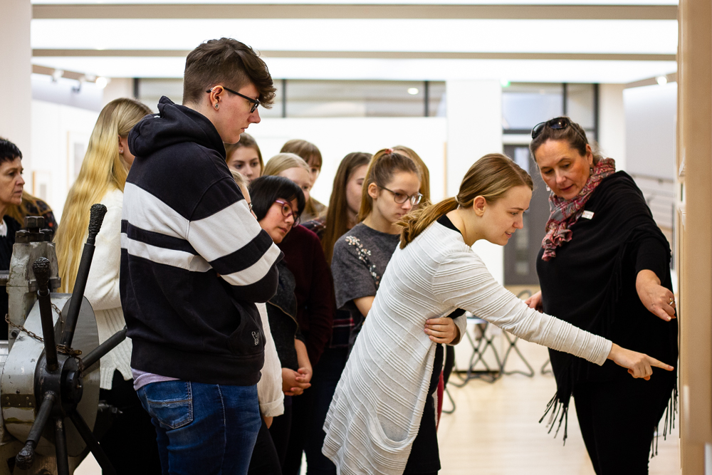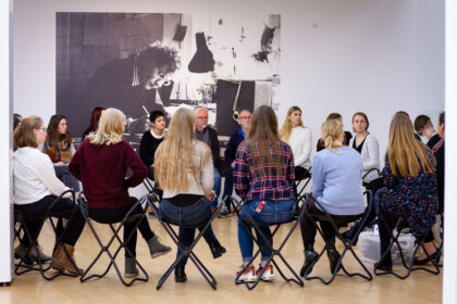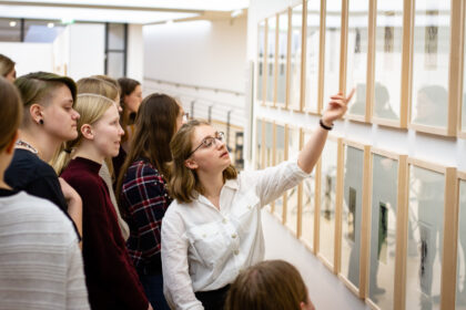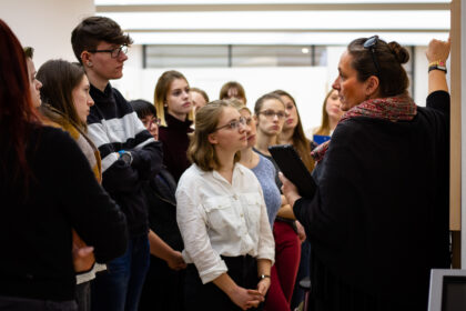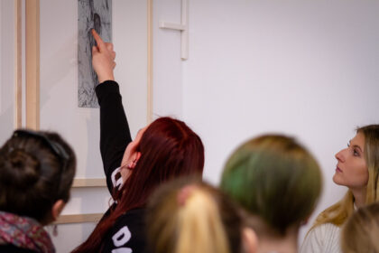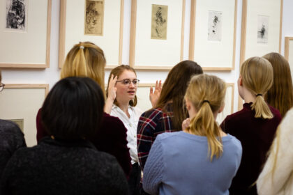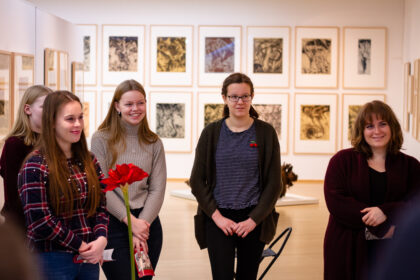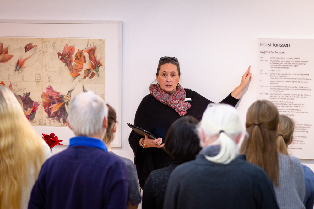 Im Rahmen des museumspädagogischen Programms erhielten die Schülerinnen und Schüler eine sehr informative und fundierte dialogische Führung durch die Kunstvermittlerin Geraldine Dudek zum Leben und Werk Horst Janssens mit besonderem Schwerpunkt auf den Radierzyklus „Hannos Tod“.