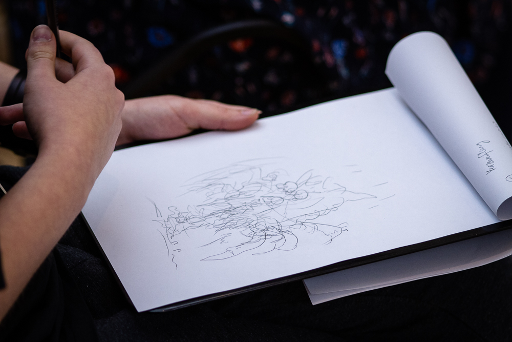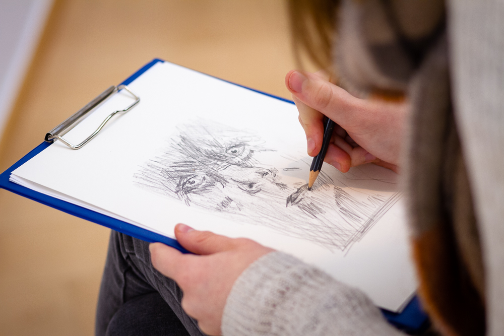 Am Ende der Führung stand eine praktische zeichnerische Übung.
