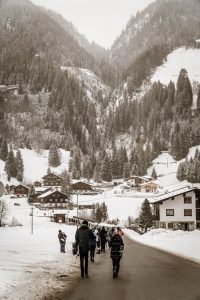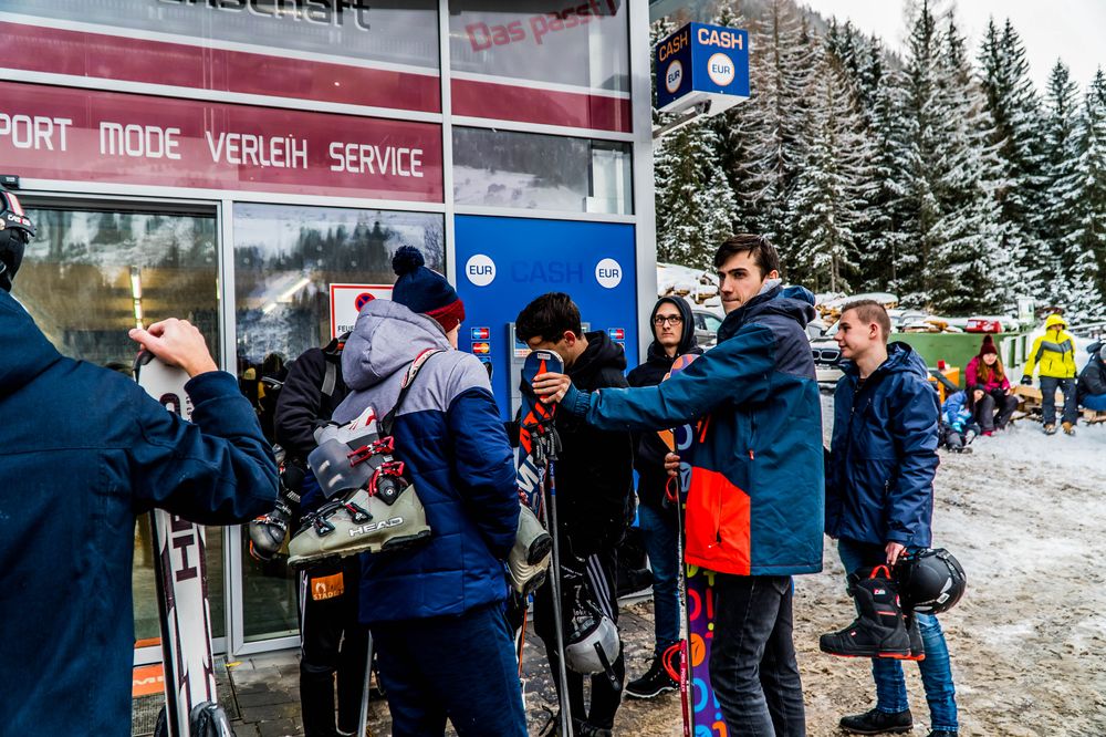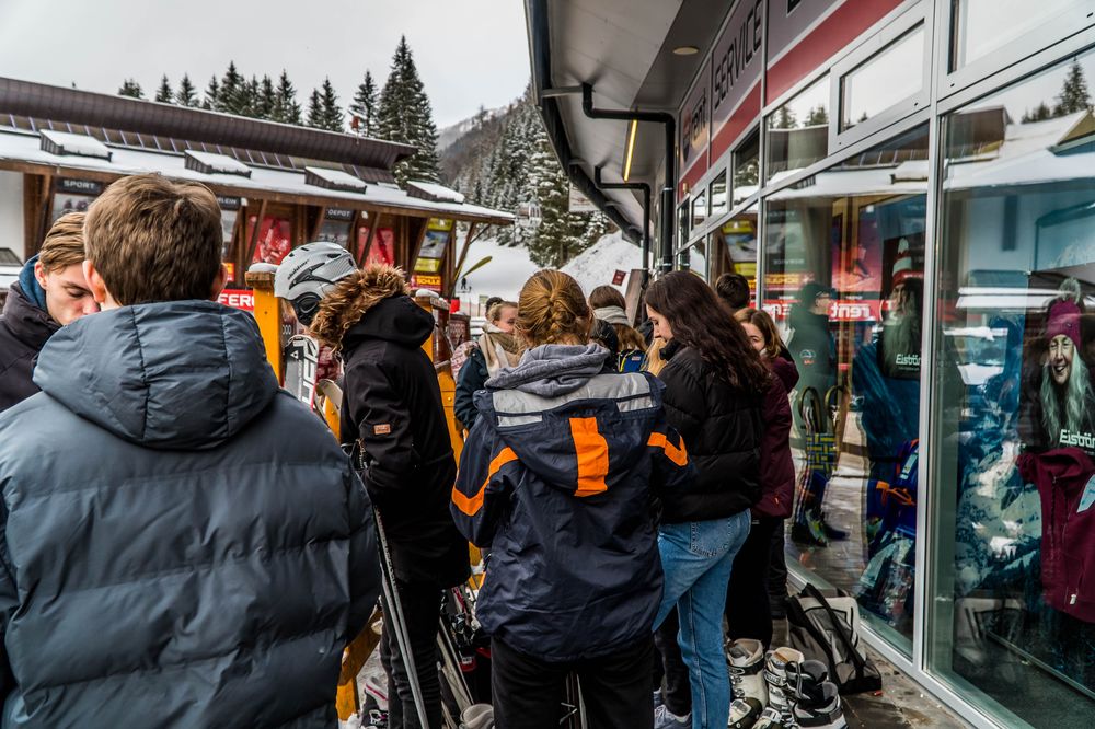 Vorausgesagtes Schneegestöber ab München und geschlossene Pässe in Österreich versprachen allen eine laaange Fahrt. Diese wurde aber durch eine gute Atmosphäre angenehm aufgefangen und positiv gesehen: Wir konnten dem Schulalltag für eine Woche in Richtung Schnee entfliehen und uns erwartete das volle Wintersportabenteuer! Ab München lag tatsächlich Schnee und es wurde auch immer mehr. An einer Raststätte lagen sogar bis zu zwei Meter! Wir begannen unsere Reise um 16 Uhr in Stade, und sind am nächsten Tag etwa gegen 13 Uhr in unserer Unterkunft angekommen. Diese Anreise musste erst einmal verdaut werden, sodass am Ankunftstag nur noch die Materialleihe, die Mahlzeiten und die Organisation des ersten Tages auf der Piste anstanden.
