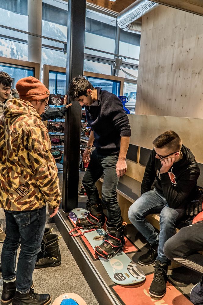 Für uns klingelte am nächsten Morgen der Wecker gegen 07.15 Uhr, der uns dann früher oder später auch tatsächlich aus dem Bett holte. Noch vor dem Frühstück, welches von 7.30 Uhr bis 8.30 Uhr angesetzt war, wurden bereits erste Teile der Ausrüstung angelegt. Dementsprechend fand nach dem Frühstück nur noch die Abrundung der Vorbereitung für die Piste statt. Also gingen wir rasch vom Frühstück auf das Zimmer und danach sofort in den Skikeller, in dem alles von Skistöcken bis Snowboardschuhen untergebracht war.