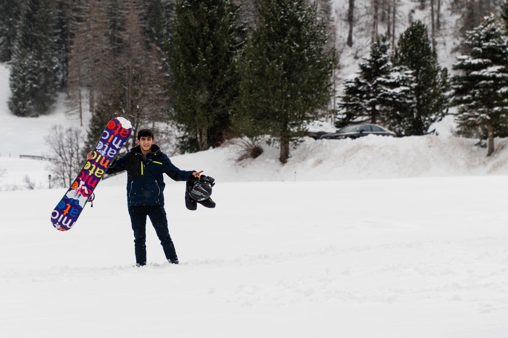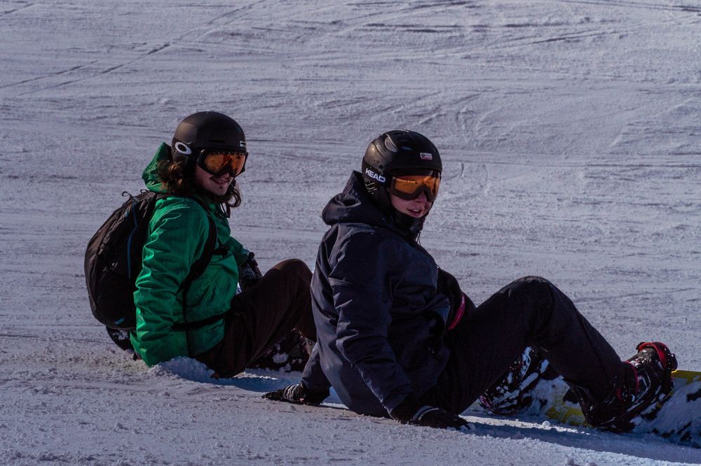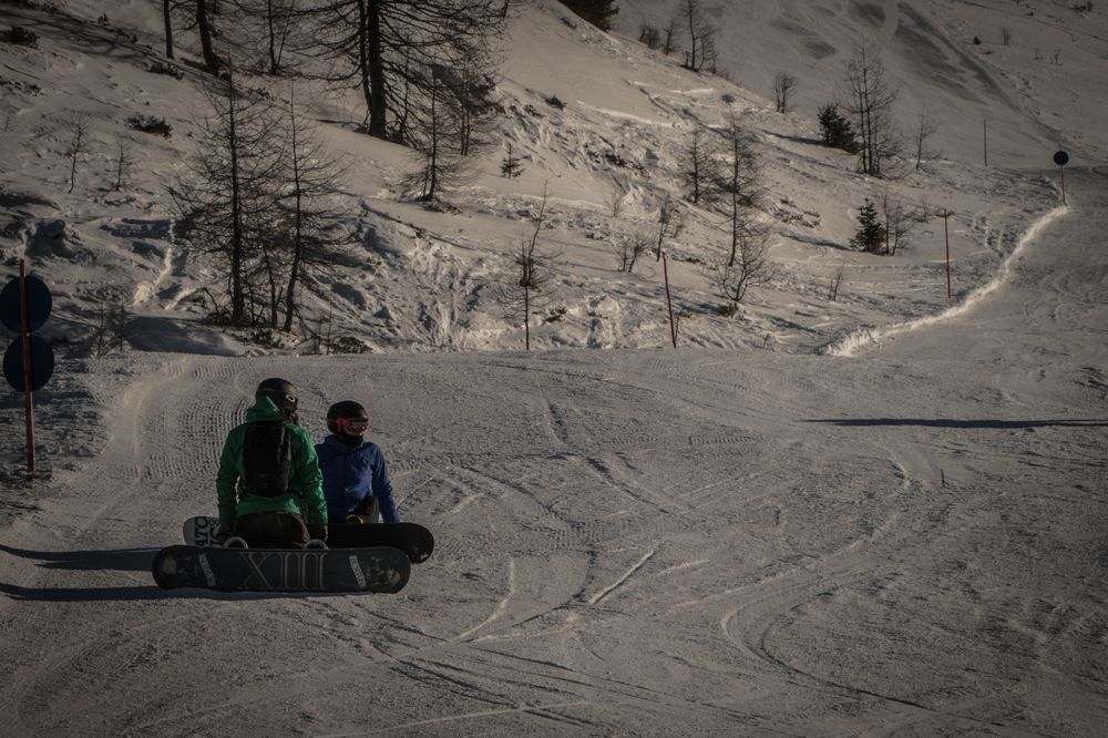 Die Snowboarder blieben eine Weile länger am Übungshang. Snowboardfahren ist in vielerlei Hinsicht deutlich komplexer als Skifahren zu erlernen und kann gerade an den ersten Tagen ziemlich frustrierend sein, da man vergleichsweise häufiger hinfällt. Man muss echt hart zu sich sein, um nicht vorschnell aufzugeben und das Snowboard an den Nagel hängen zu wollen. Es lohnt sich aber, am Ball zu bleiben.