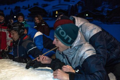 Am Mittwoch feierten wir gemeinsam das Bergfest, nachdem wir von der Piste wiedergekommen waren. An dem Tag wurden alle im Namen der IGS als SkifahrerInnen oder SnowboarderInnen getauft. Es wurde eine kleine Zeremonie vorbereitet und mit einem Taufspruch schworen wir unsere Treue dem Skifahren/Snowboarden und besiegelten dies mit einem feierlichen Akt. Das Bergfest war eine besondere Überraschung für uns Teilnehmer und sorgte zusätzlich für eine lustige und ausgelassene Stimmung.