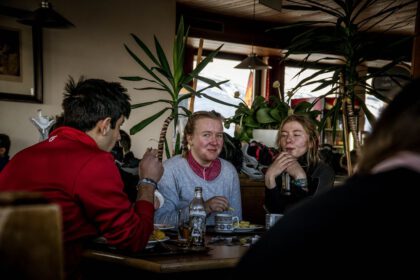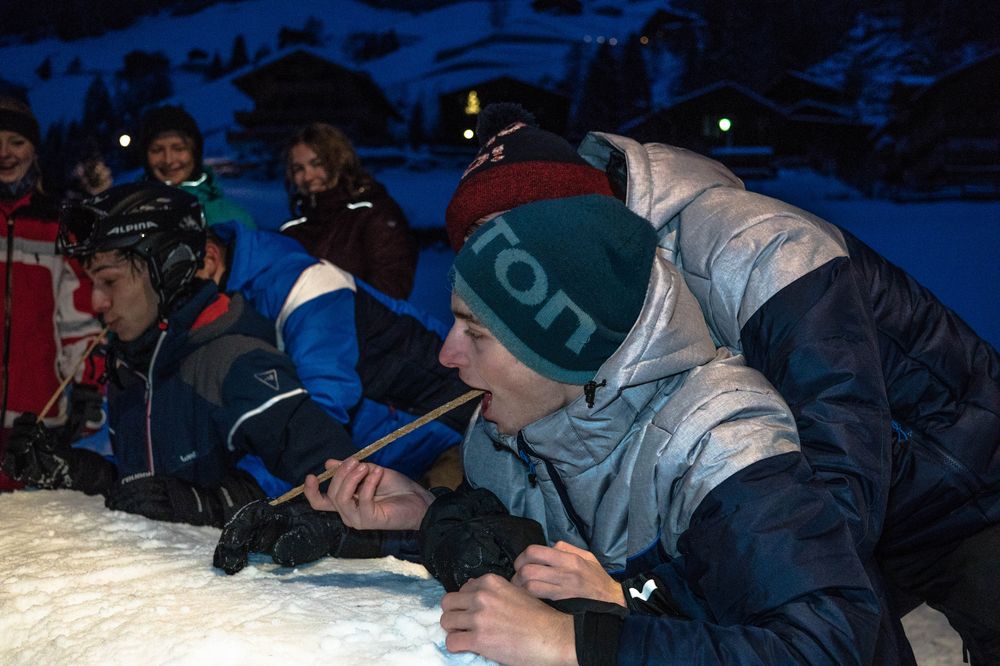 Bis circa 16 Uhr waren wir auf den Pisten unterwegs und wechselten zwischen den beliebten „Mofas“ – Motivationsfahrten – und Lernfahrten. Nach den letzten Abfahrten trafen wir uns meistens mit der gesamten Gruppe auf ein kühles oder warmes Getränk im Tal. Danach ging es mit dem Ski-Bus zurück zur Unterkunft und um 18:30 Uhr stand das gemeinsame Abendessen an.