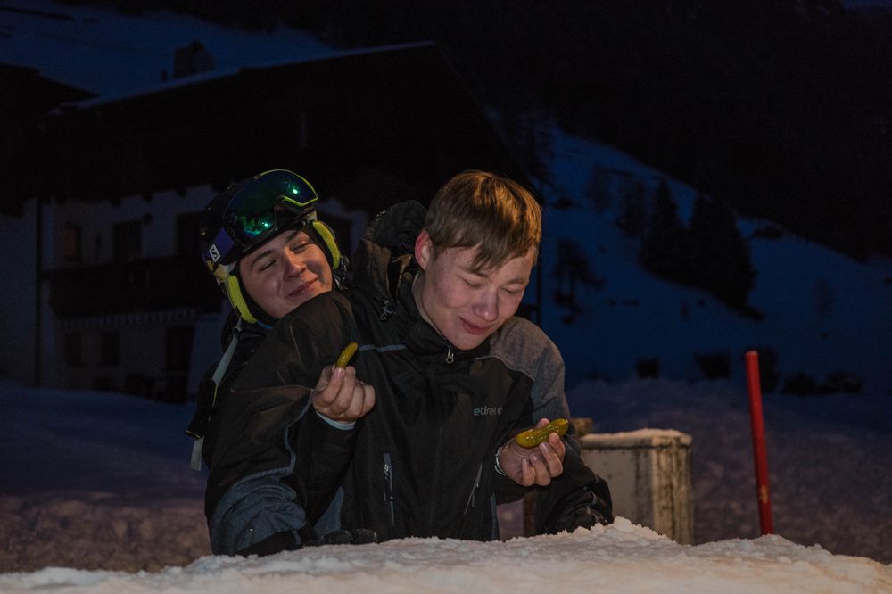 Am Freitag, unserem letzten Abend, feierten wir nach dem Abendessen die erfolg- und erlebnisreiche Woche, in der uns bekannten „Zisch Hütte“ an der Talstation. Jeder, der mit wollte, konnte so die Woche und den Abend feierlich ausklingen lassen.