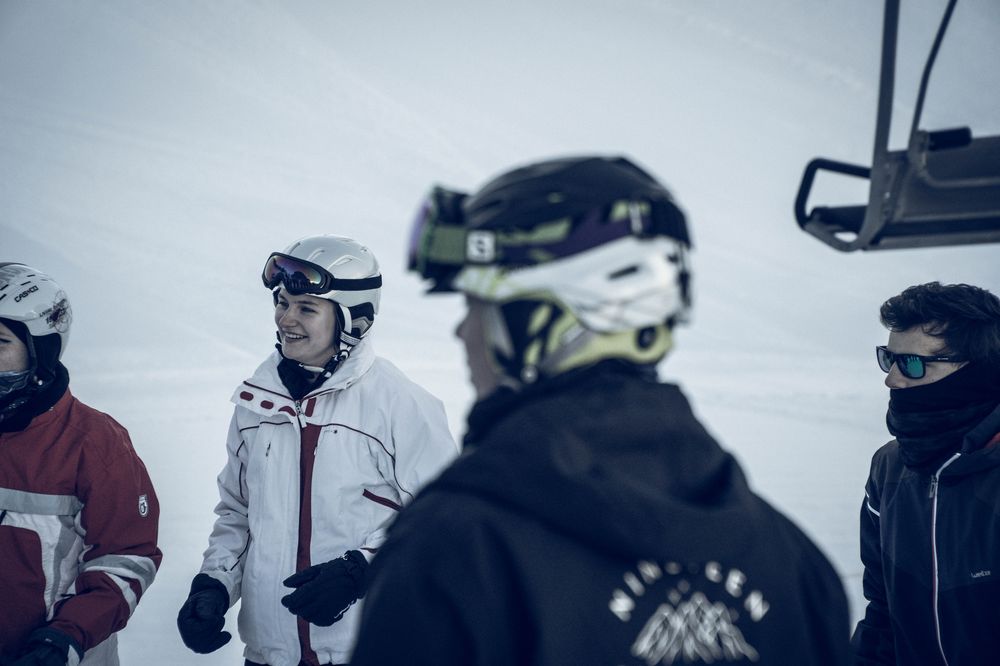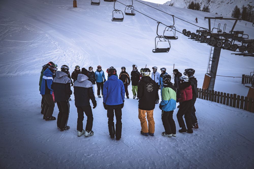 War man erst einmal oben angekommen, galten die ersten Fahrten häufig der Wiedereingewöhnung an das am Vortag Gelernte. Natürlich fand das nicht immer reibungslos statt, aber trotzdem konnte man bereits da wieder erste Erfolge für sich verbuchen. Nach jeder Abfahrt sammelte wir uns unten am Lift für weitere Besprechungen und meistens auch noch einmal oben. Dabei sind wir nur selten eine Abfahrt in einem Stück gefahren, sondern haben zwischendurch oft Gesprächspausen gemacht, um Übungen zur besseren Kurvenfahrt oder zur Balance im nächsten Abschnitt zu besprechen und auszuwerten.
