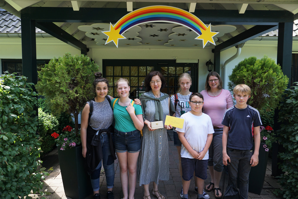 Das Geld haben Meleknur, Jorik, Philipp, Luisa, Frau Schmidt und Anike am 19.06.2019 übergeben. Dafür sind sie mit dem Zug nach Hamburg gefahren und haben das Geld persönlich überreicht.
