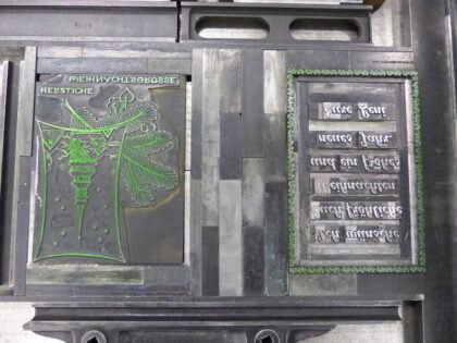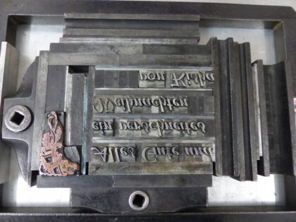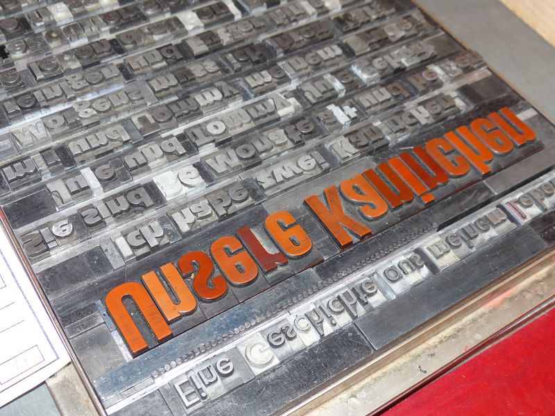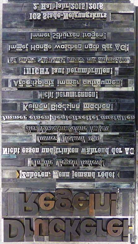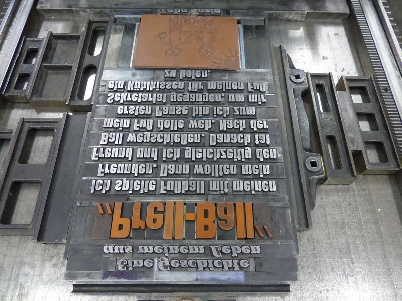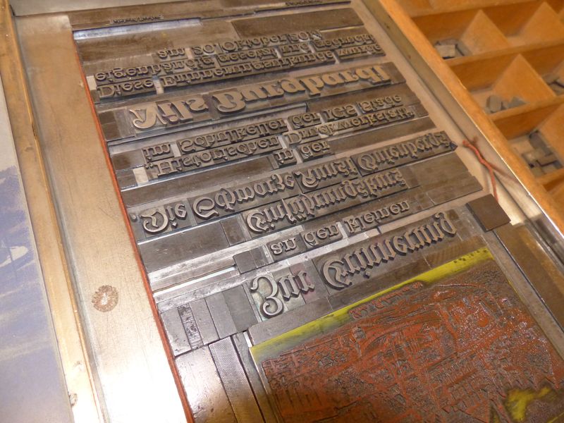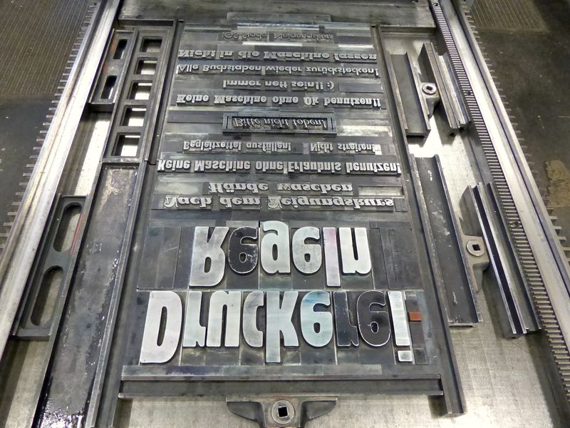 Ursprünglich stand ein Teil dieser alten Druckerei in der Setzerei des Verlages Gruner+Jahr im Hamburger Pressehaus. Hier entstanden damals bis Anfang 1982 die Seiten der Zeitschriften Stern, Brigitte, Spiegel und der Wochenzeitung „DIE ZEIT“. Doch dann hatte die alte „Bleisatz-Technik“ ausgedient und die Seiten wurden danach zuerst im Fotosatz und später dann — bis heute — mit dem Computer produziert. In den Folgejahren kamen dann bei uns immer wieder Maschinen, Geräte und Schriften aus anderen Druckereien dazu, die inzwischen auf Foto- oder Digitalsatz umgestiegen waren.