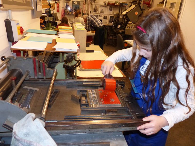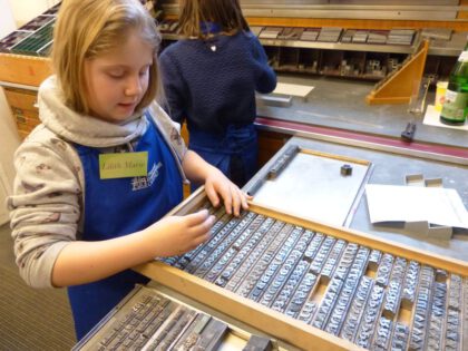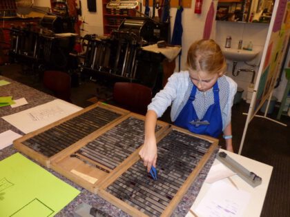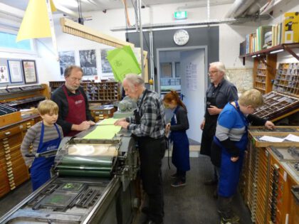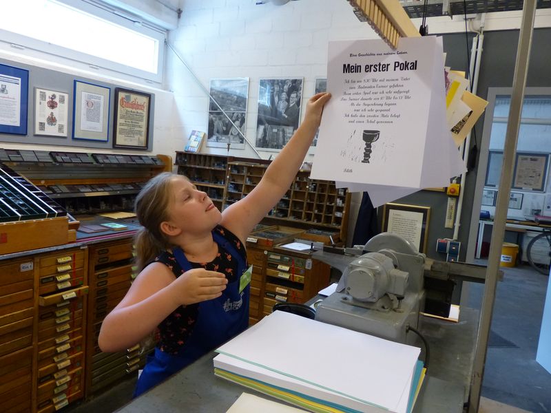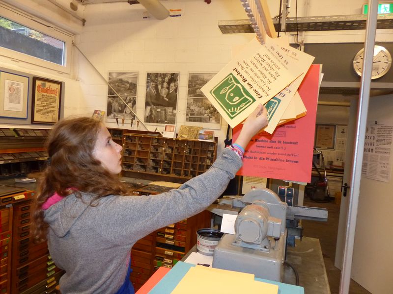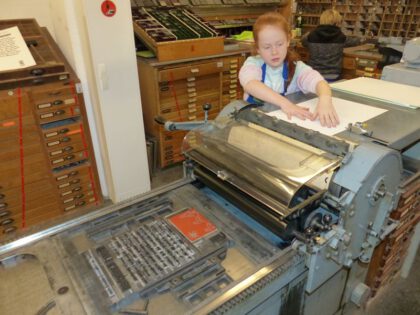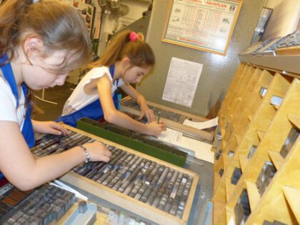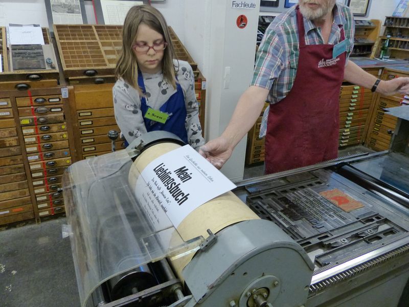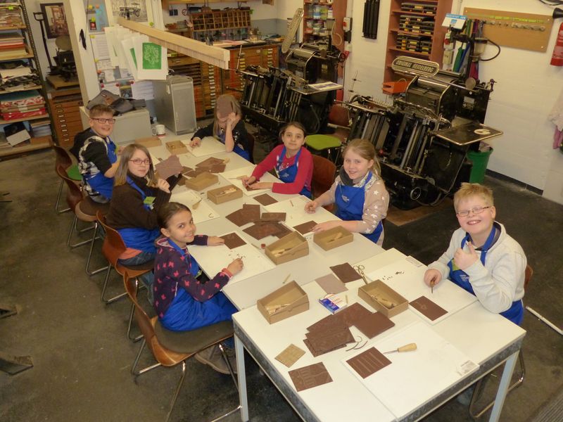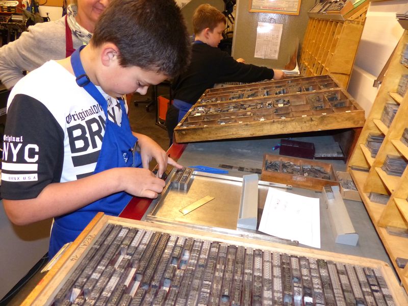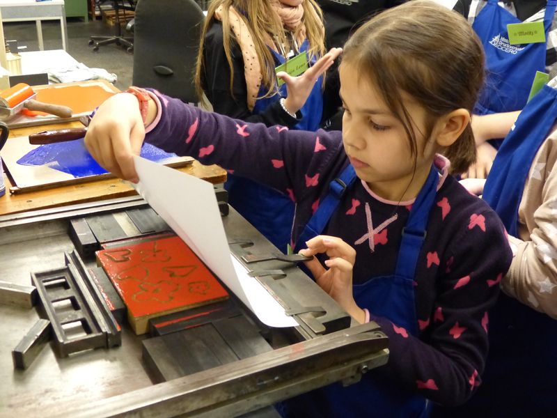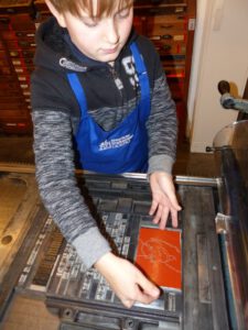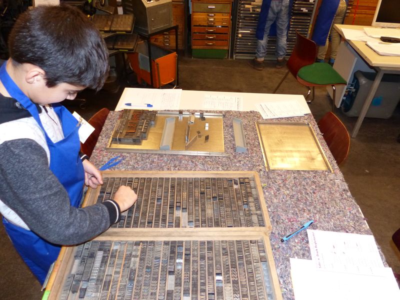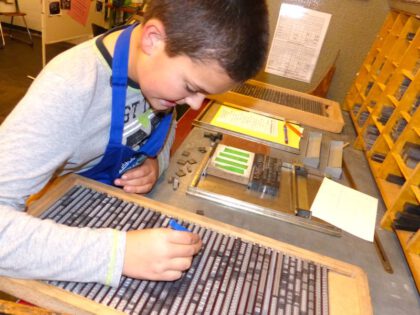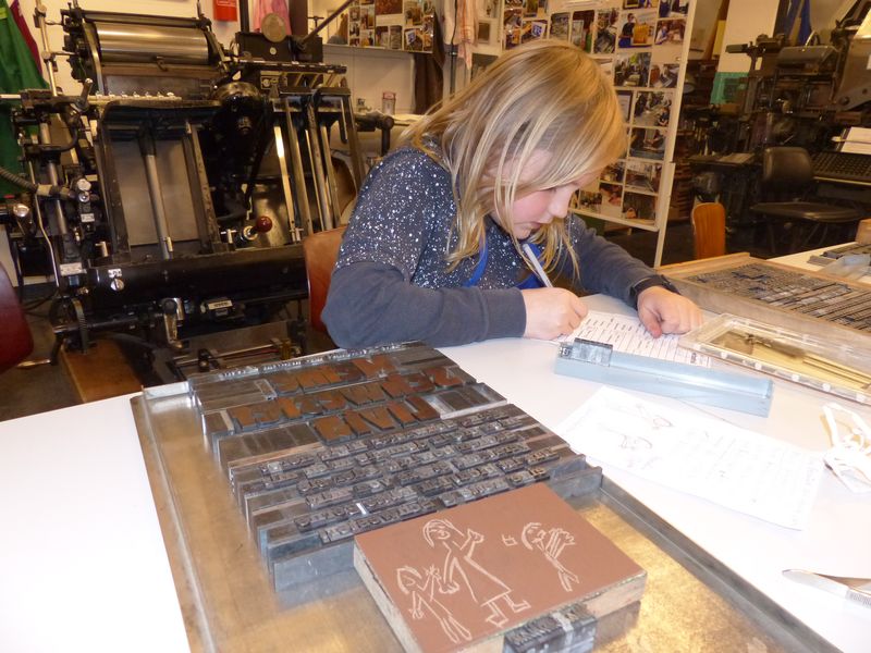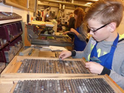 Im Mittelpunkt unserer Arbeit mit den Kindern in unserer „Historischen Druckwerkstatt“ soll darum das eigenhändige Erstellen und Verarbeiten von Texten und Bildern sowie das Erleben des Druckvorgangs mit seinen notwendigen Vorstufen stehen. Unter fachkundiger Anleitung wollen wir den Schülern die Möglichkeit geben, ihre Ideen mit Blei‑, Kunststoff- und Holzbuchstaben sowie Linolschnitten in selbst geschaffene Druckerzeugnisse umzusetzen und zu Papier zu bringen.