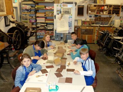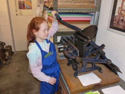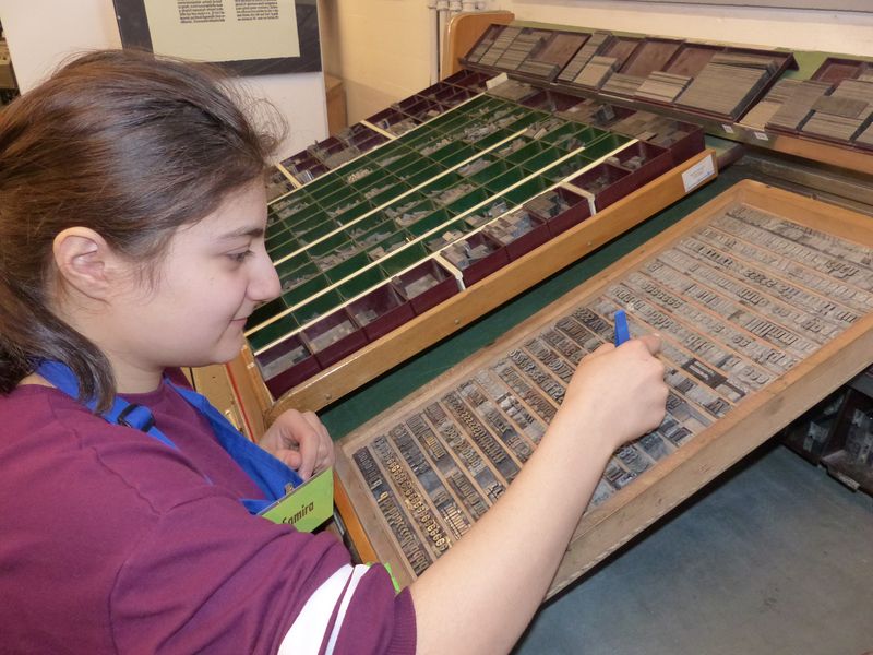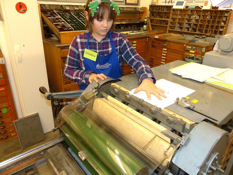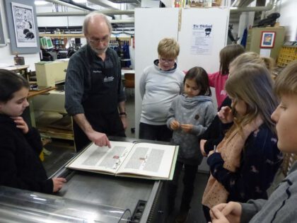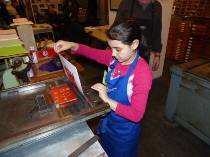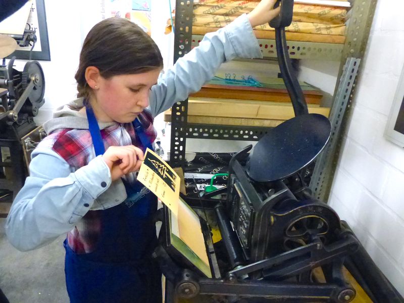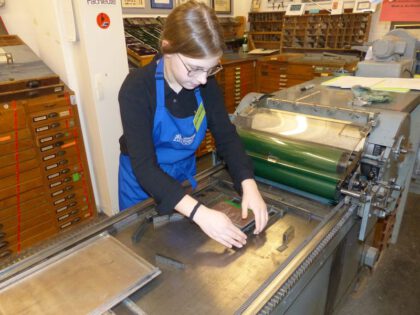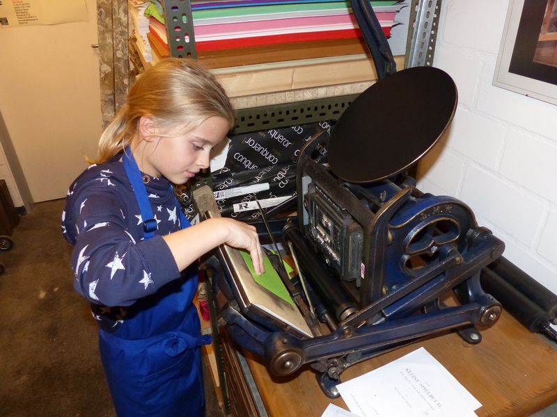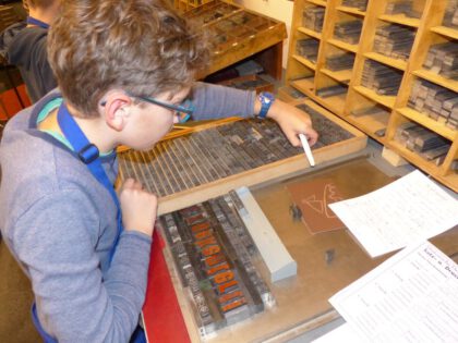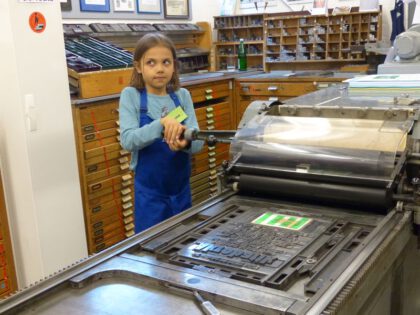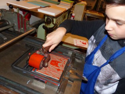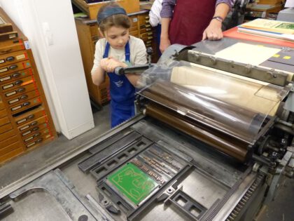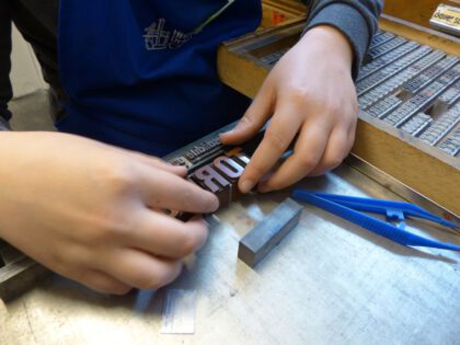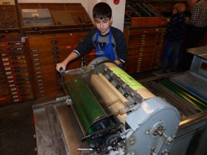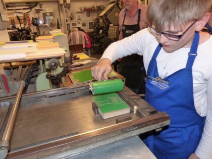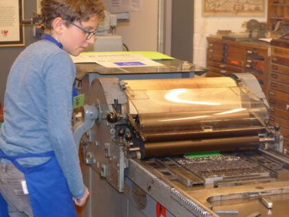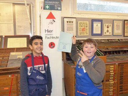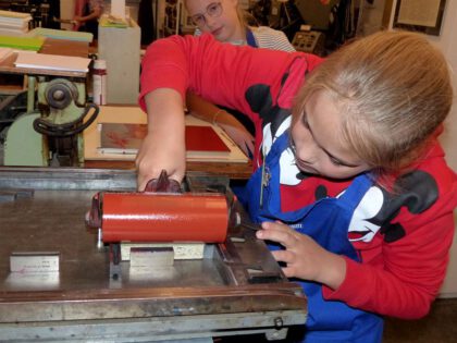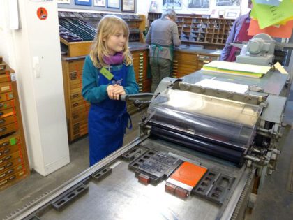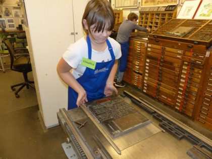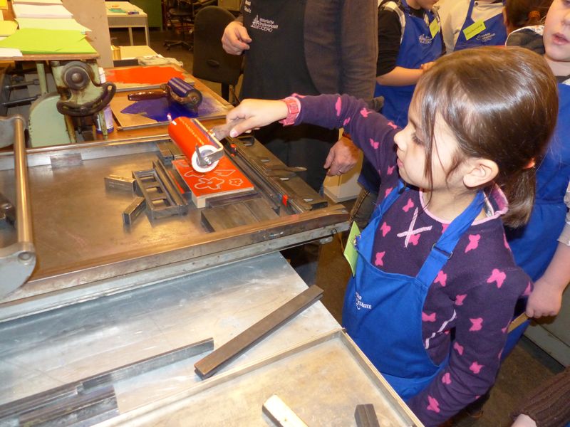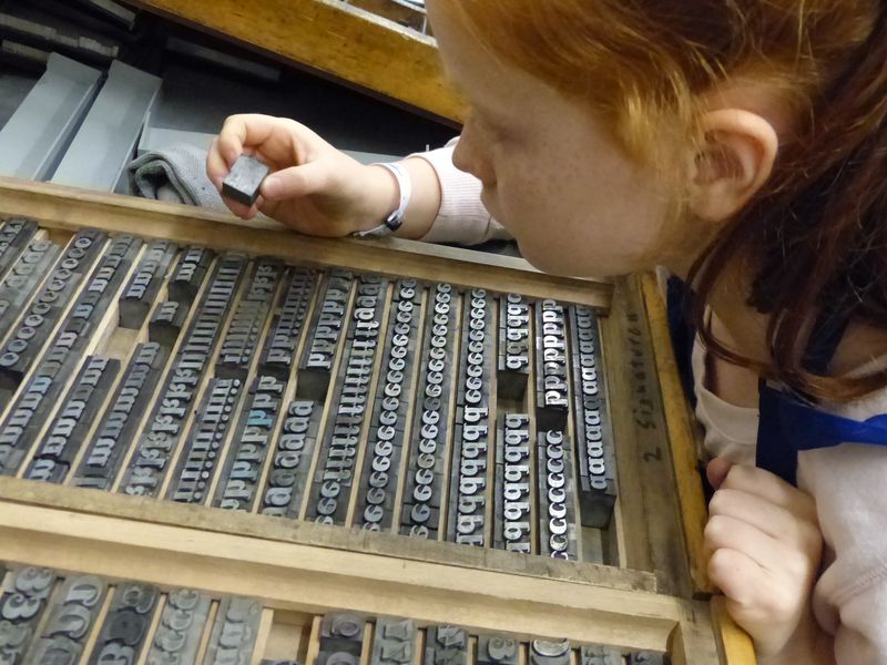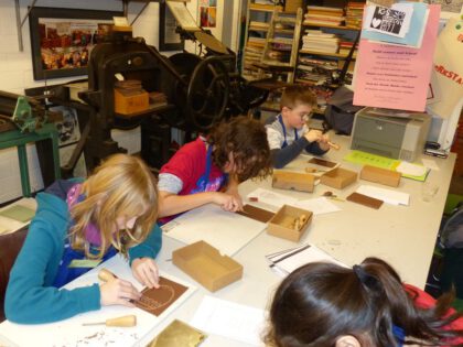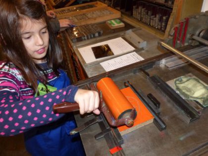 Im Mittelpunkt unserer Arbeit mit den Kindern in unserer „Historischen Druckwerkstatt“ soll darum das eigenhändige Erstellen und Verarbeiten von Texten und Bildern sowie das Erleben des Druckvorgangs mit seinen notwendigen Vorstufen stehen. Unter fachkundiger Anleitung wollen wir den Schülern die Möglichkeit geben, ihre Ideen mit Blei‑, Kunststoff- und Holzbuchstaben sowie Linolschnitten in selbst geschaffene Druckerzeugnisse umzusetzen und zu Papier zu bringen.
