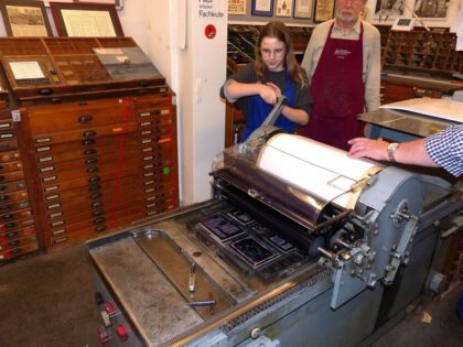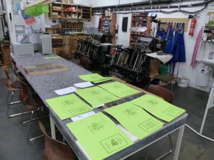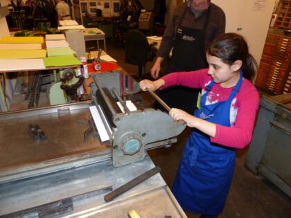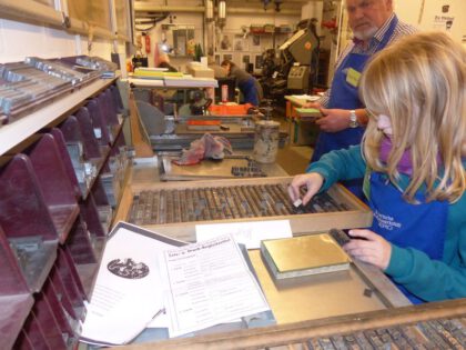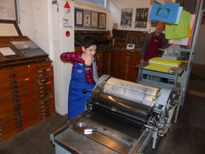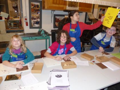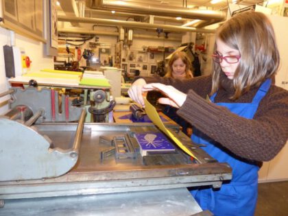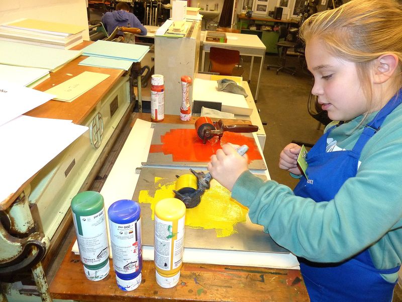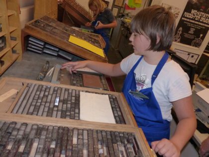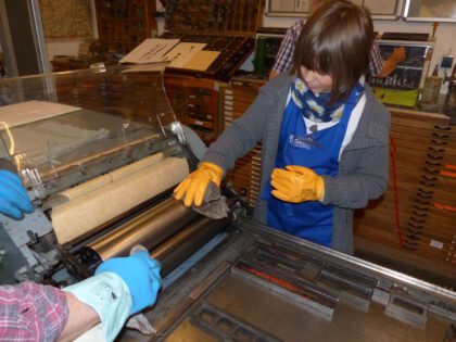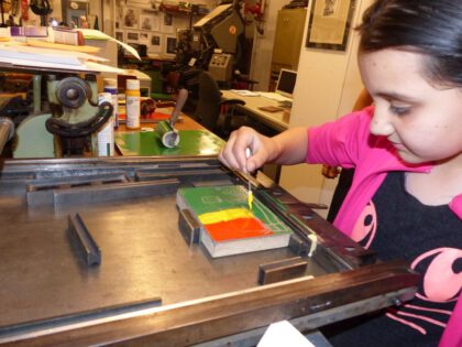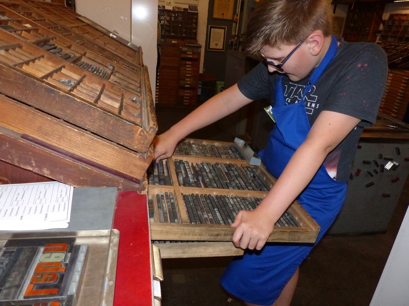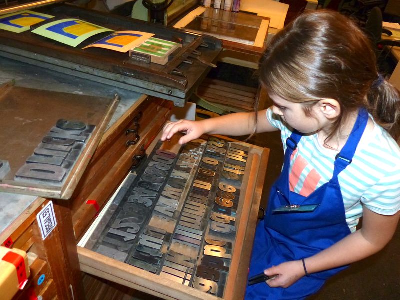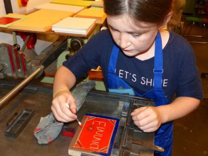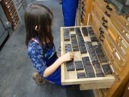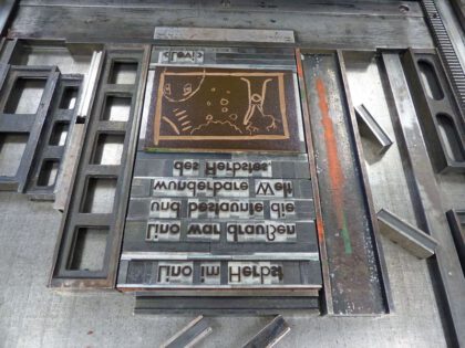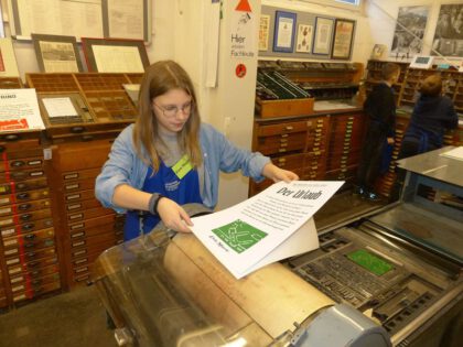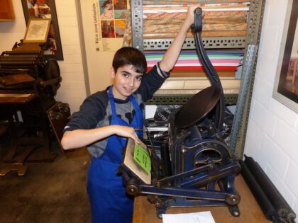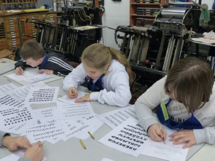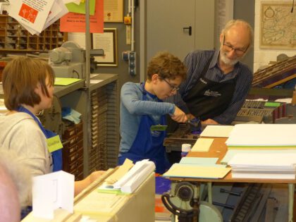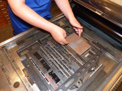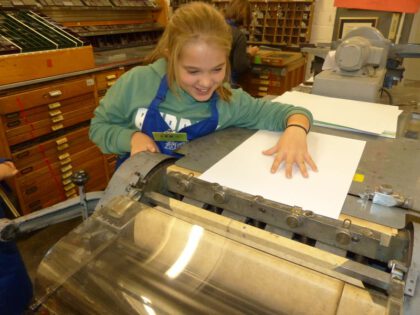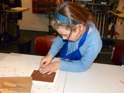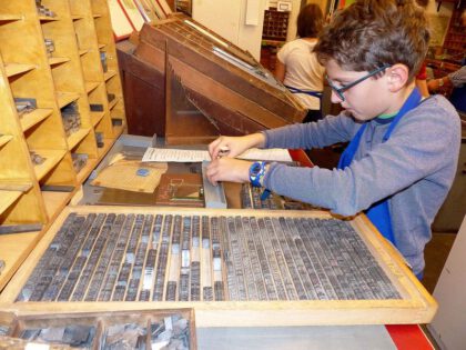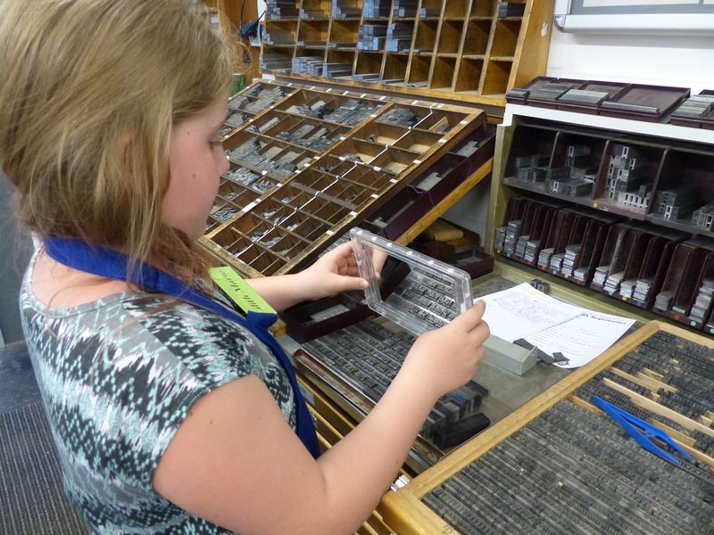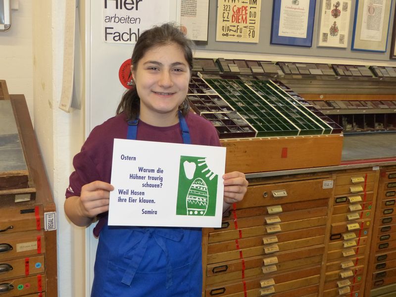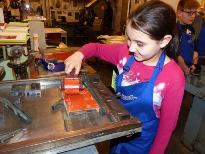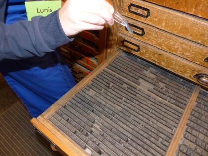 Im Mittelpunkt unserer Arbeit mit den Kindern in unserer „Historischen Druckwerkstatt“ soll darum das eigenhändige Erstellen und Verarbeiten von Texten und Bildern sowie das Erleben des Druckvorgangs mit seinen notwendigen Vorstufen stehen. Unter fachkundiger Anleitung wollen wir den Schülern die Möglichkeit geben, ihre Ideen mit Blei‑, Kunststoff- und Holzbuchstaben sowie Linolschnitten in selbst geschaffene Druckerzeugnisse umzusetzen und zu Papier zu bringen.