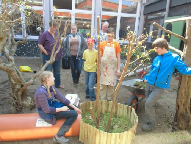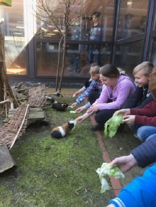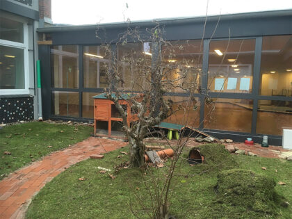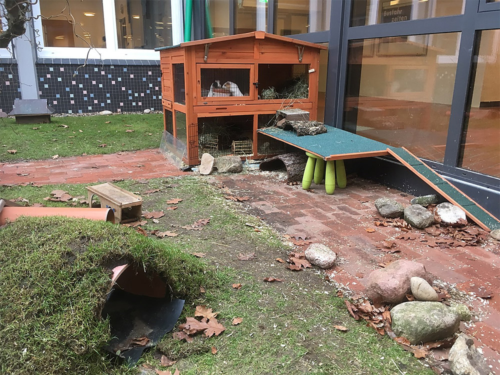 Seit Herbst 2012 gestalteten Schülerinnen den Innenhof des Schulzentrums zu einem Gehege für Meerschweinchen um. Im Sommer 2013 ging es mit zwei gespendeten Meeris los.