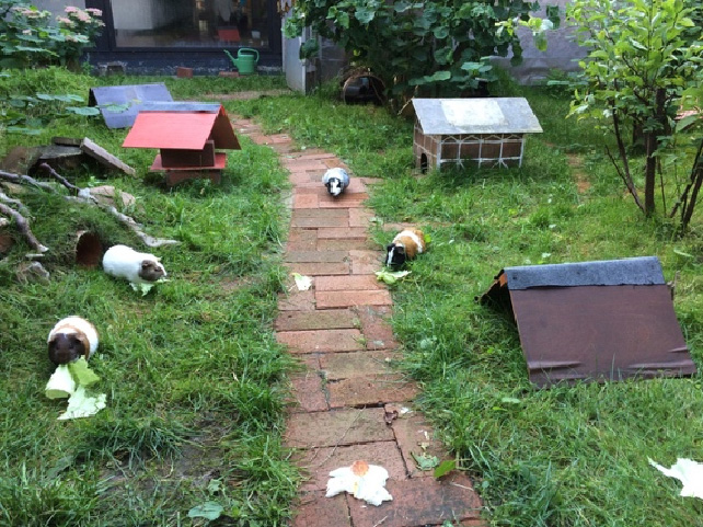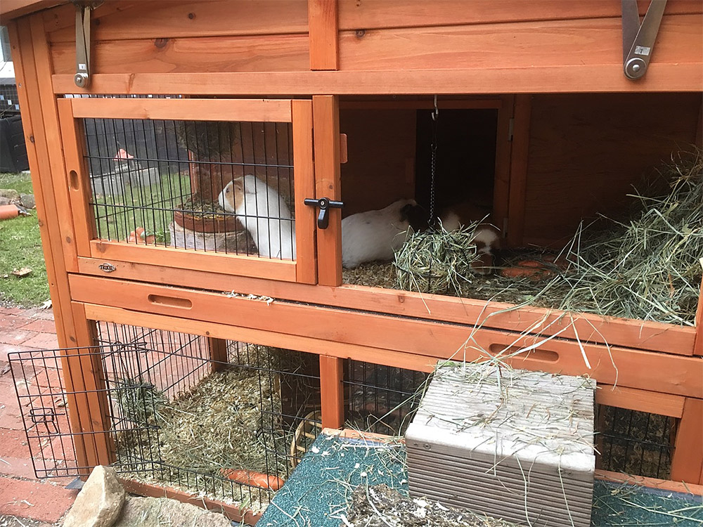2023 bekamen wir endlich einen begehbaren überdachten Raum. Dies ermöglicht an den vielen nassen Tagen eine direkte Nähe zu den Meerschweinchen. Zudem wird der Rasen geschont und die Meeris haben immer ein trockenes Zuhause.